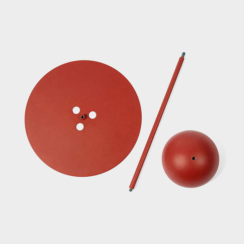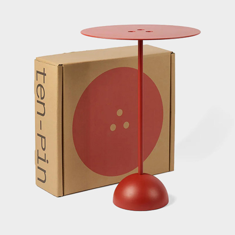 ボウリングボールを握るときの直感的な動作から着想を得たデザインで、持ち運びやすさを考慮した3つの穴がユニークなアクセントになっています。