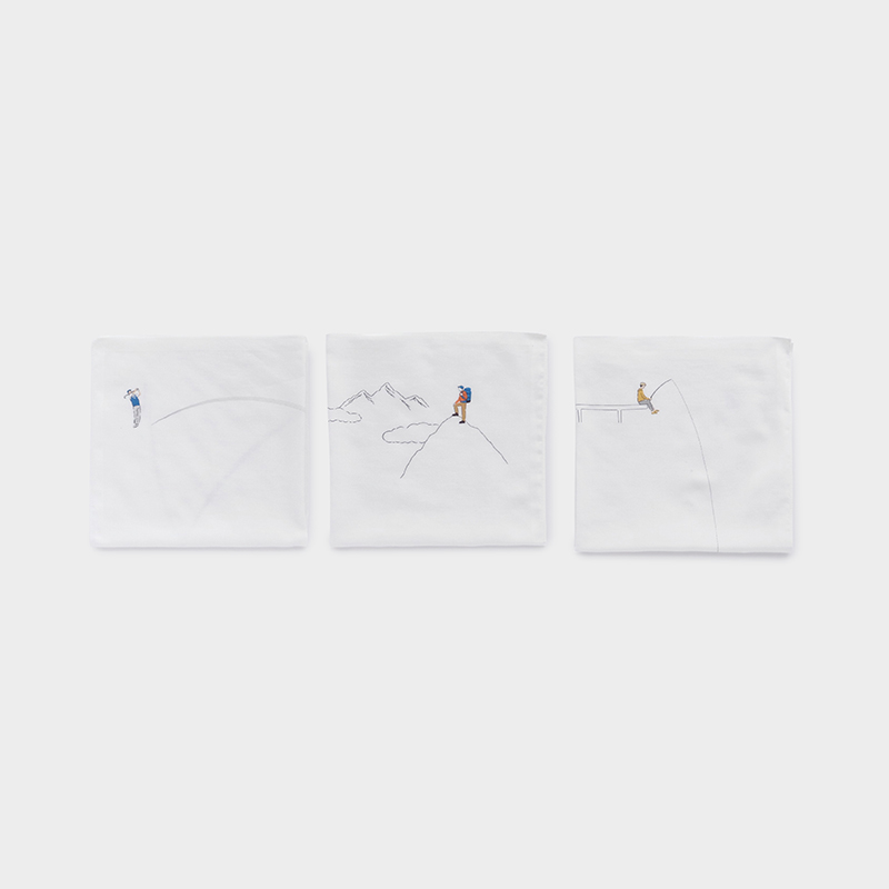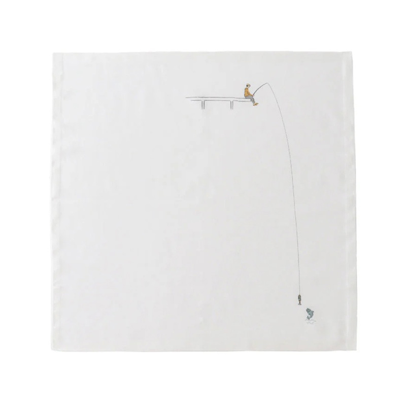 クラシクス・ザ・スモールラグジュアリは、1879年創業のブルーミング中西が2003年に立ち上げたハンカチ専門店。上質な素材と繊細な刺繍、美しいデザインにこだわり、企画から包装に至るまで丁寧に仕上げています。“ひそやかな贅沢”を一枚のハンカチに込めて、日常にそっと彩りと心地よさをお届けしています。白地のキャンパスに絵を描いたようなホビーシリーズの“釣り”。
