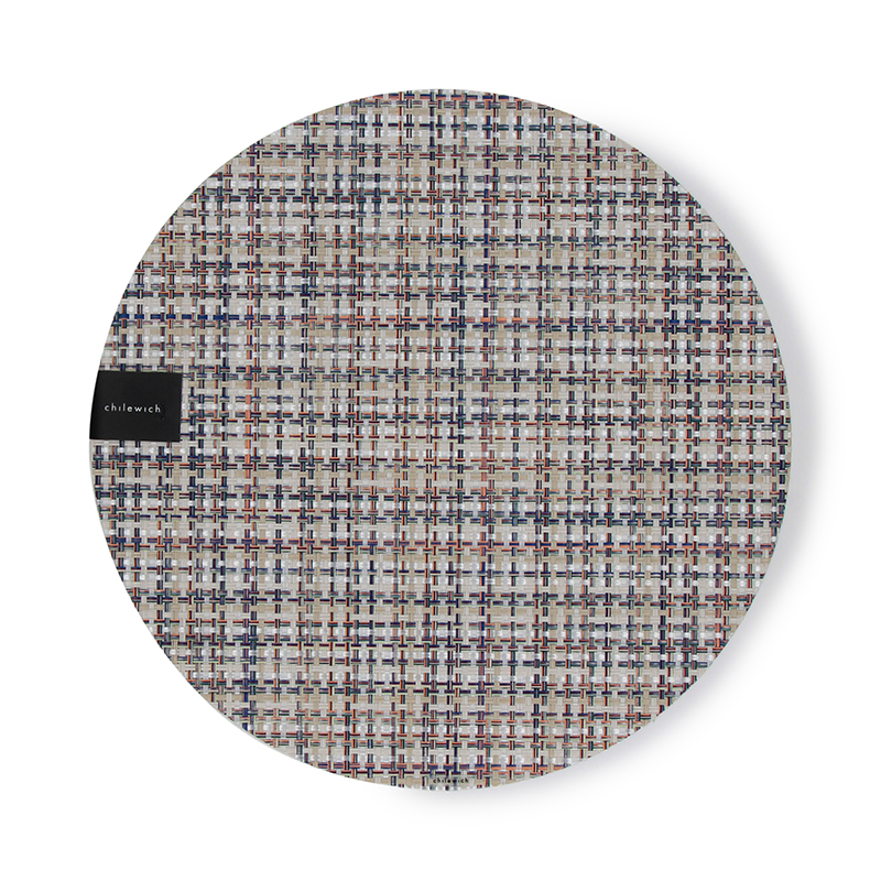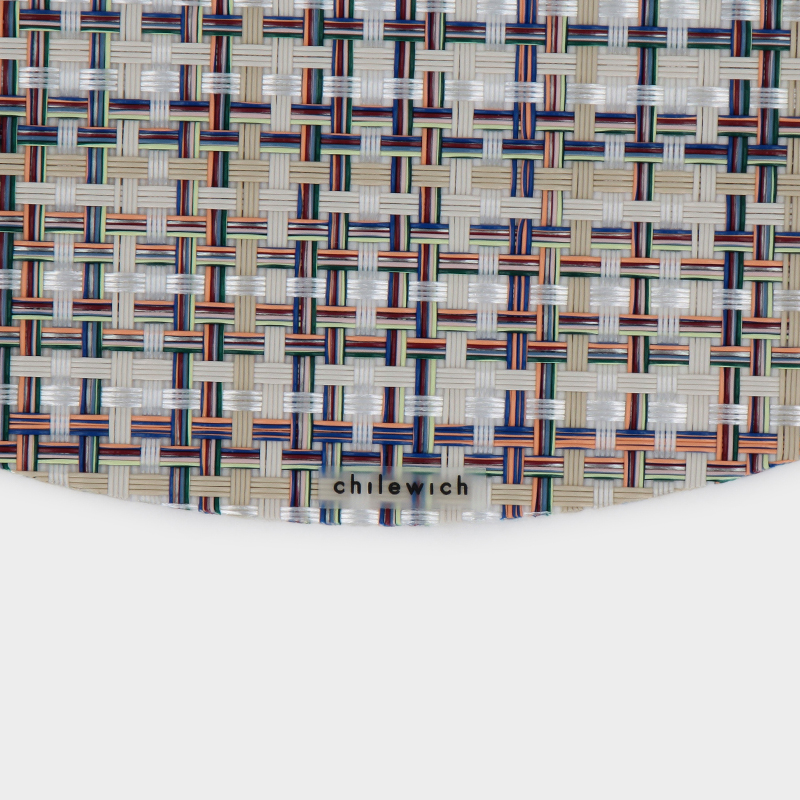 1本の糸に複数の色を使う「バイカラー」を駆使し、柄ごとに糸を開発。2000年に世界で初めて、塩化ビニル素材のプレイスマットを開発し、世界中で大きな反響となり、以降、年2回の新コレクションを発表し、デザイン賞を多数受賞しています。ニューヨークを拠点に活躍するデザイナー Sandy Chilewich(サンディー・チルウィッチ)によるプレイスマット。