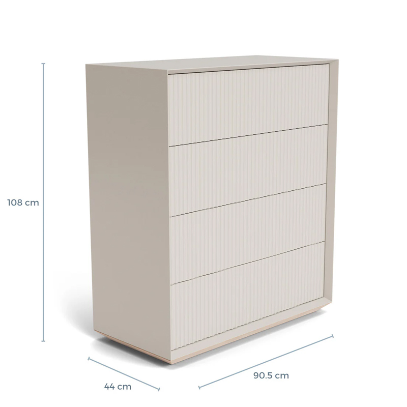 古代ギリシャ建築の柱からインスピレーションを得て生まれたこのコレクションは、日常の収納に彫刻のような深みと存在感を与えます。Pillar(ピラー)4段チェストは、たっぷりと収納できる4つの引き出しを備えた収納家具です。