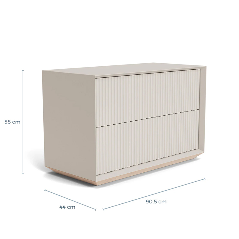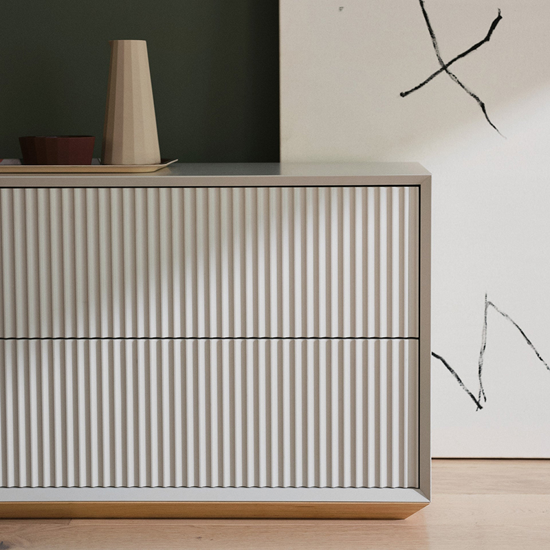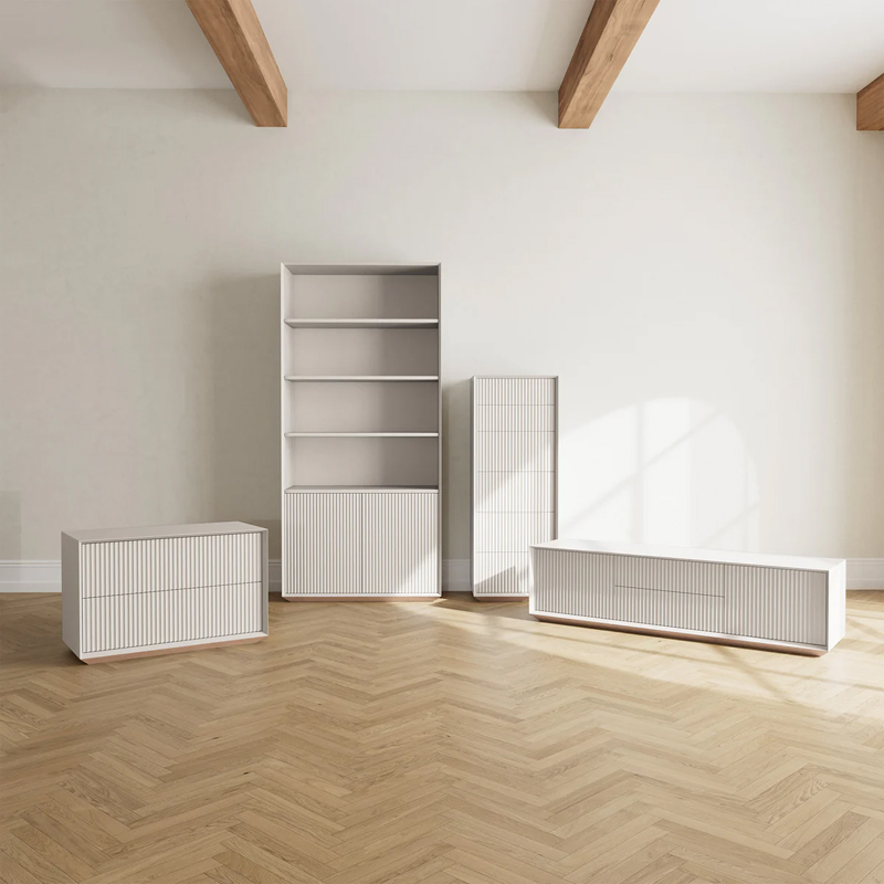 古代ギリシャ建築の柱からインスピレーションを得て生まれたこのコレクションは、日常の収納に彫刻のような深みと存在感を与えます。Pillar(ピラー)2段ユニットは、プッシュ式の引き出しを2つ備えたデザインで、彫刻的な美しさを損なうことなく、すっきりとした仕上がりを実現しています。