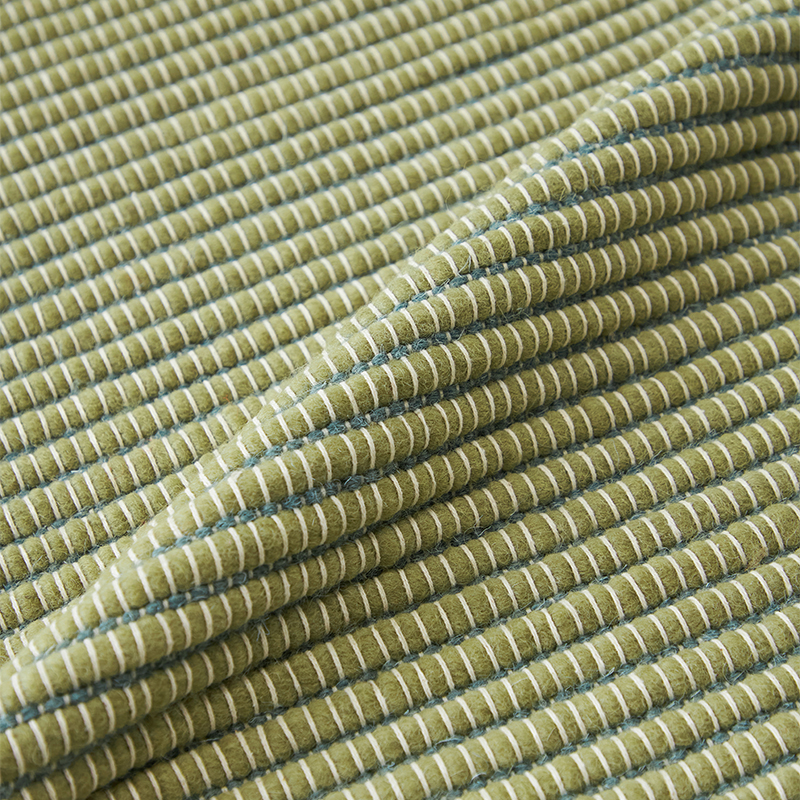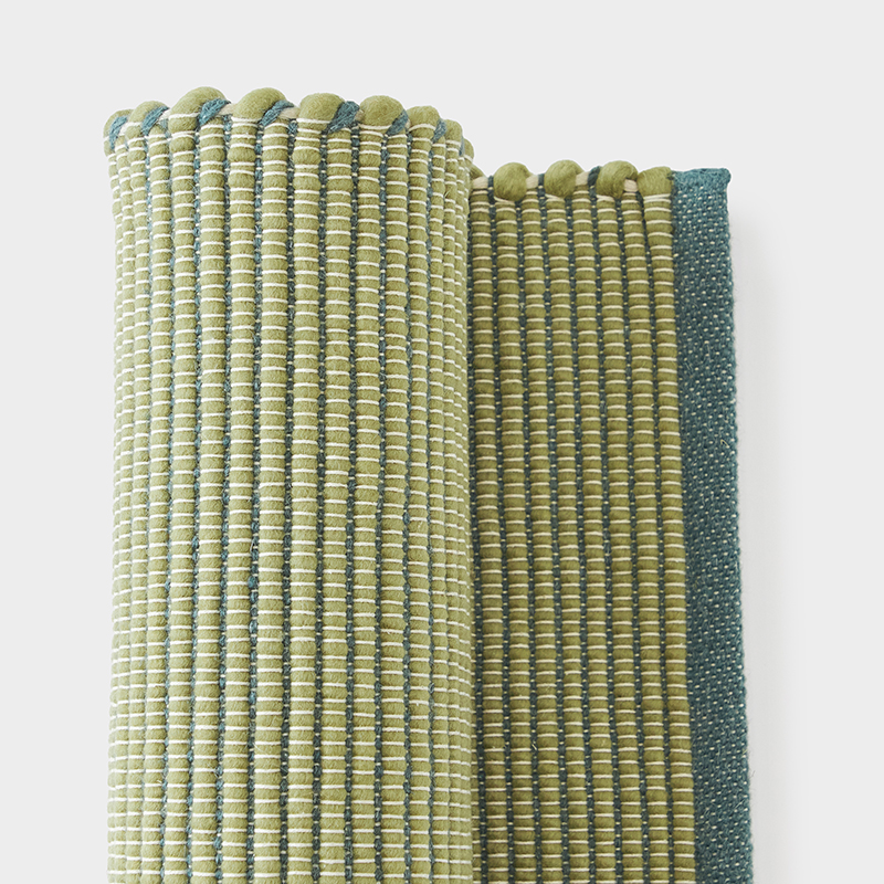 マーロンラグは、伝統的な織機で一つひとつ手織りされており、手仕事ならではの自然な風合いや個性が際立ちます。表情豊かなスラブ調の生地は、心地よい手触りと、リラックス感あふれるやさしい雰囲気を演出します。