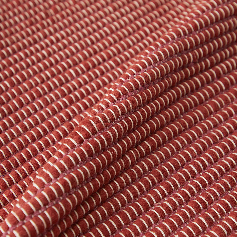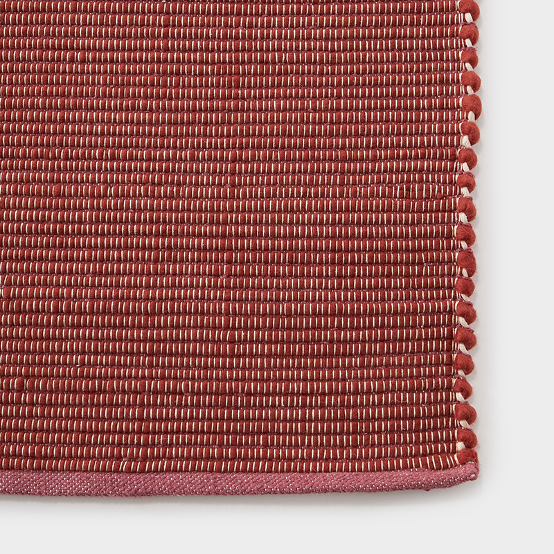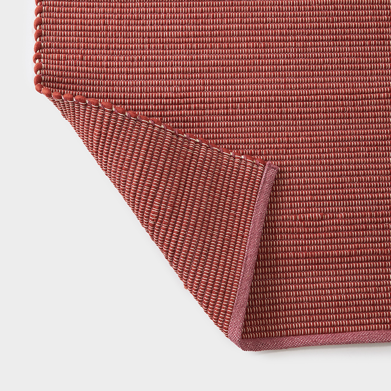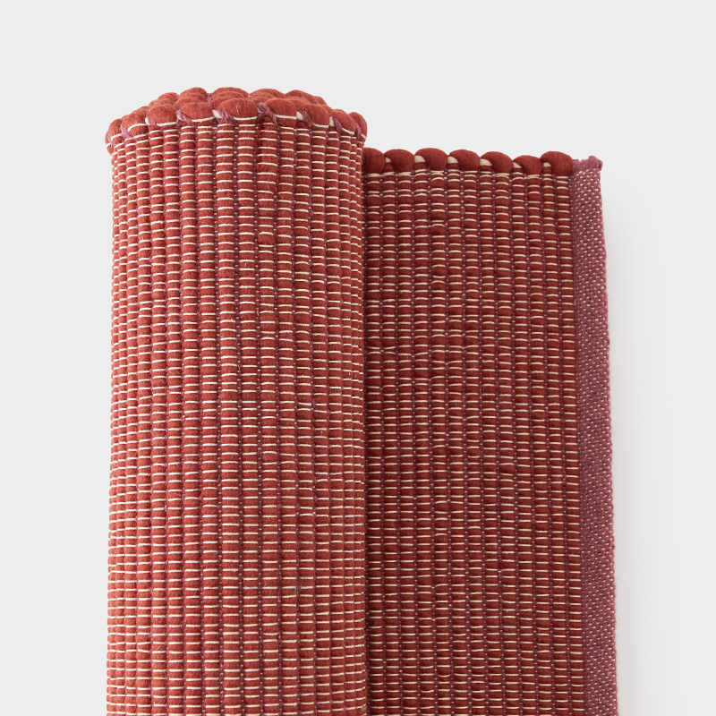 マーロンラグは、伝統的な織機で一つひとつ手織りされており、手仕事ならではの自然な風合いや個性が際立ちます。表情豊かなスラブ調の生地は、心地よい手触りと、リラックス感あふれるやさしい雰囲気を演出します。