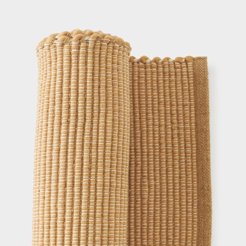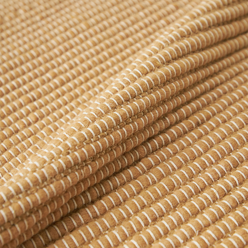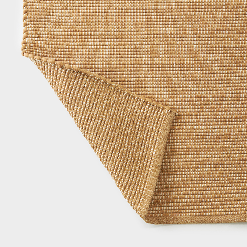 マーロンラグは、伝統的な織機で一つひとつ手織りされており、手仕事ならではの自然な風合いや個性が際立ちます。表情豊かなスラブ調の生地は、心地よい手触りと、リラックス感あふれるやさしい雰囲気を演出します。