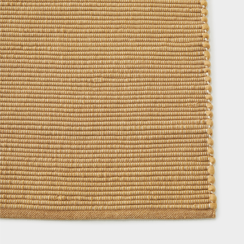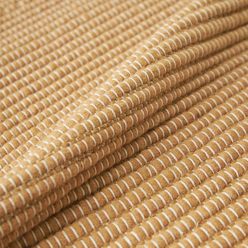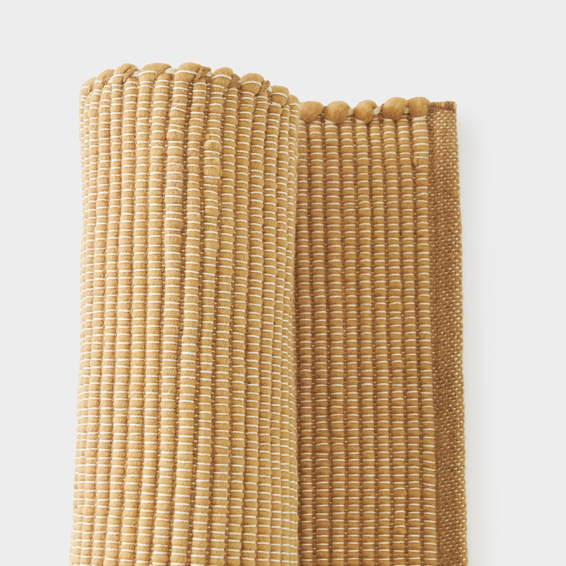 マーロンラグは、伝統的な織機で一つひとつ手織りされており、手仕事ならではの自然な風合いや個性が際立ちます。表情豊かなスラブ調の生地は、心地よい手触りと、リラックス感あふれるやさしい雰囲気を演出します。