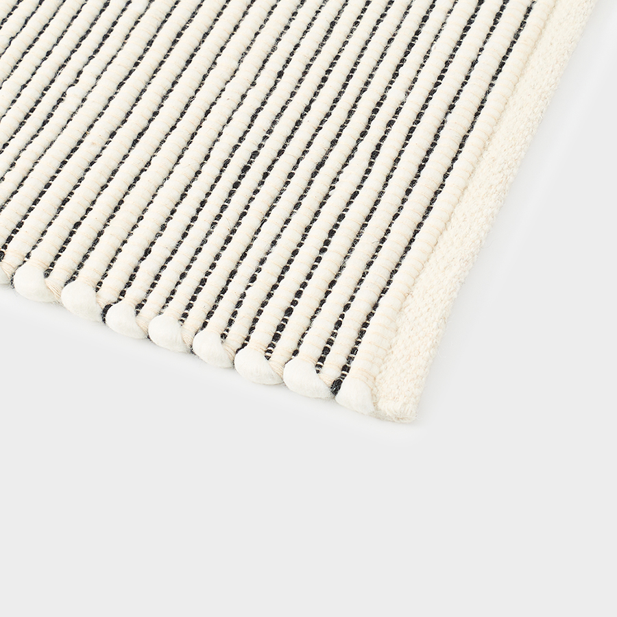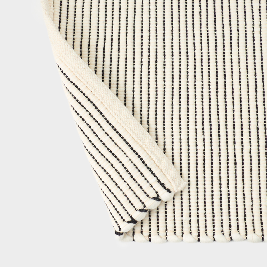 マーロンラグは、伝統的な織機で一つひとつ手織りされており、手仕事ならではの自然な風合いや個性が際立ちます。表情豊かなスラブ調の生地は、心地よい手触りと、リラックス感あふれるやさしい雰囲気を演出します。