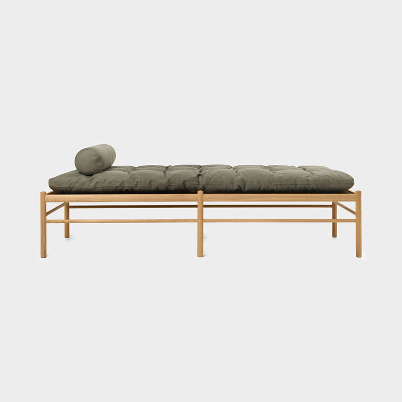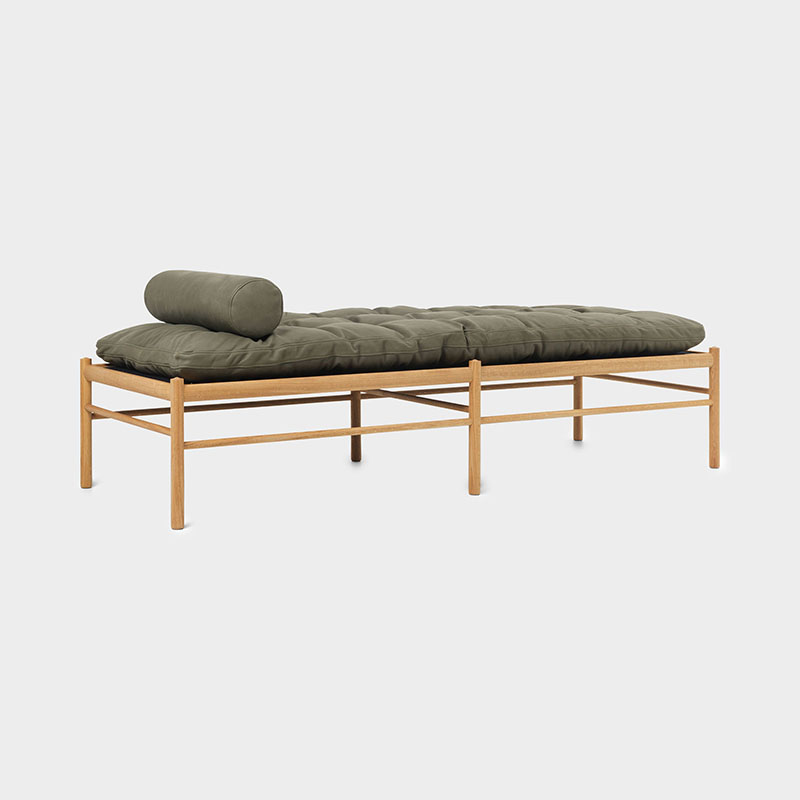 オーレ・ヴァンシャーの代表作のひとつで、オーク無垢材のフレームに美しく横たわる長いクッションが特徴です。