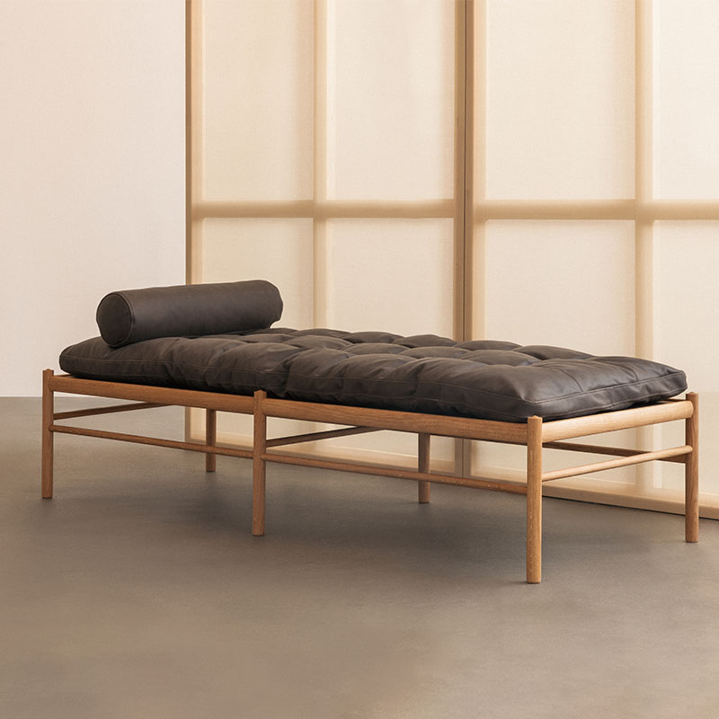 オーレ・ヴァンシャーの代表作のひとつで、オーク無垢材のフレームに美しく横たわる長いクッションが特徴です。