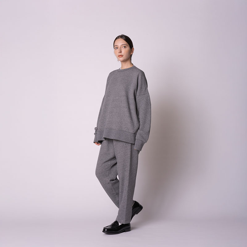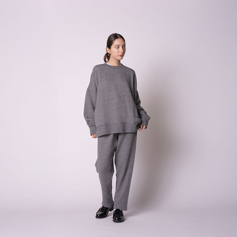 希少な改造編み機で編み上げた柔らかな生地を、オーバーサイズのジェンダーレスなシルエットに仕立てました。