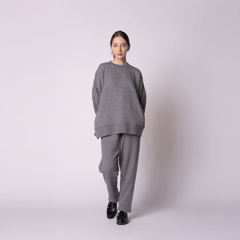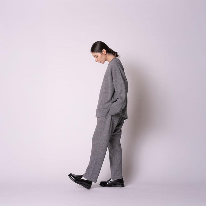 希少な改造編み機で編み上げた柔らかな生地を、オーバーサイズのジェンダーレスなシルエットに仕立てました。