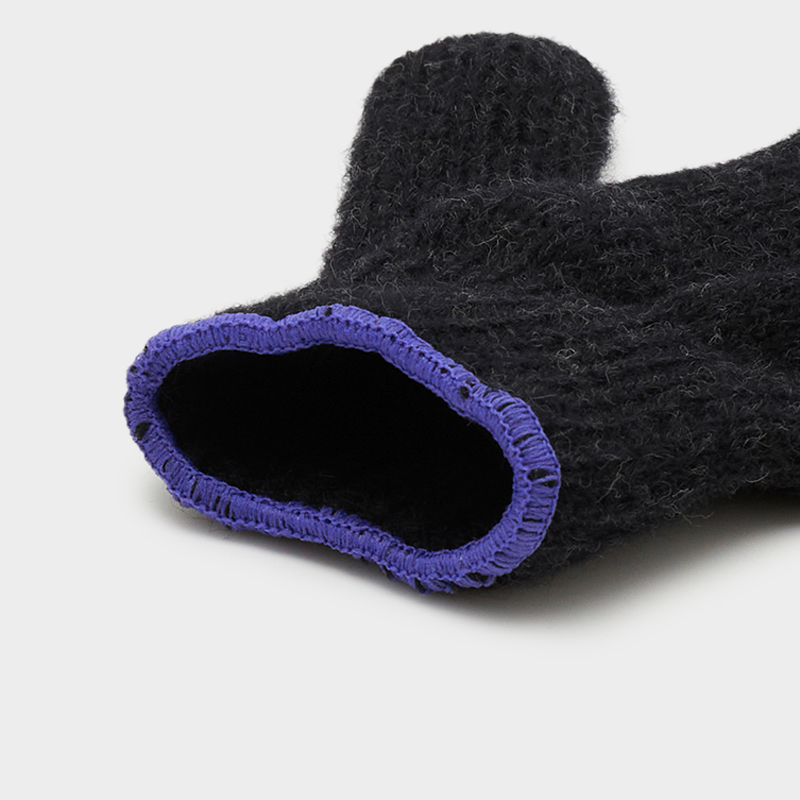 通常の軍手と同じ工程で製作され、左右対称でパターンやステッチも同様ですが、仕上げは手作業で行い、細部に丁寧な手仕事が施されています。