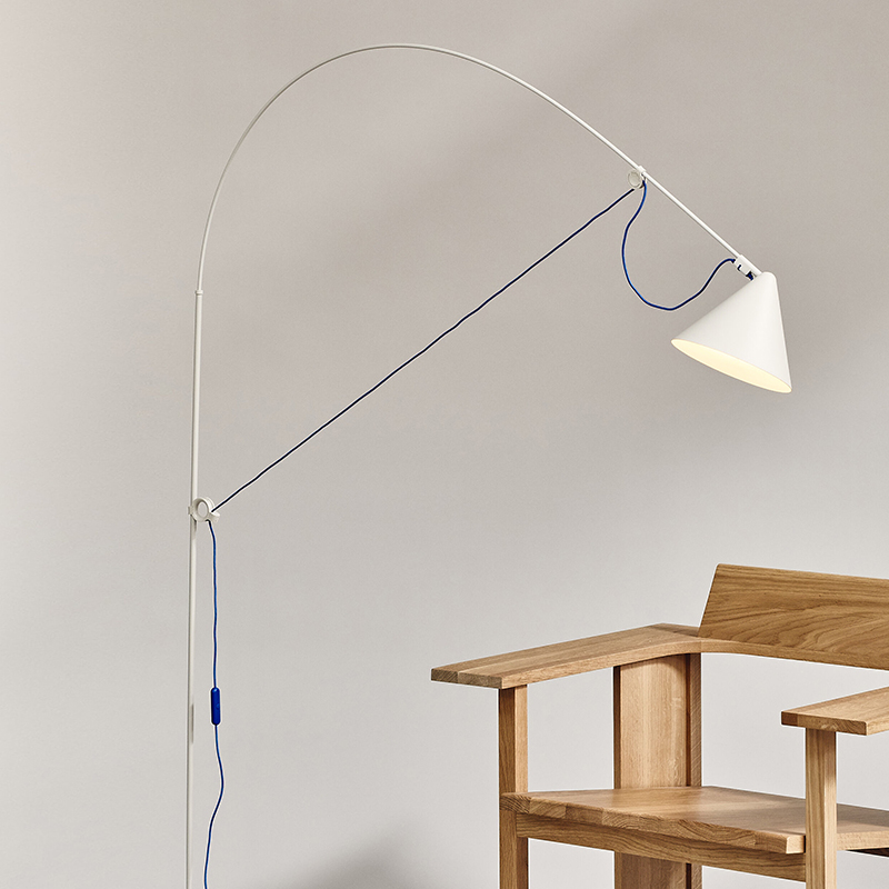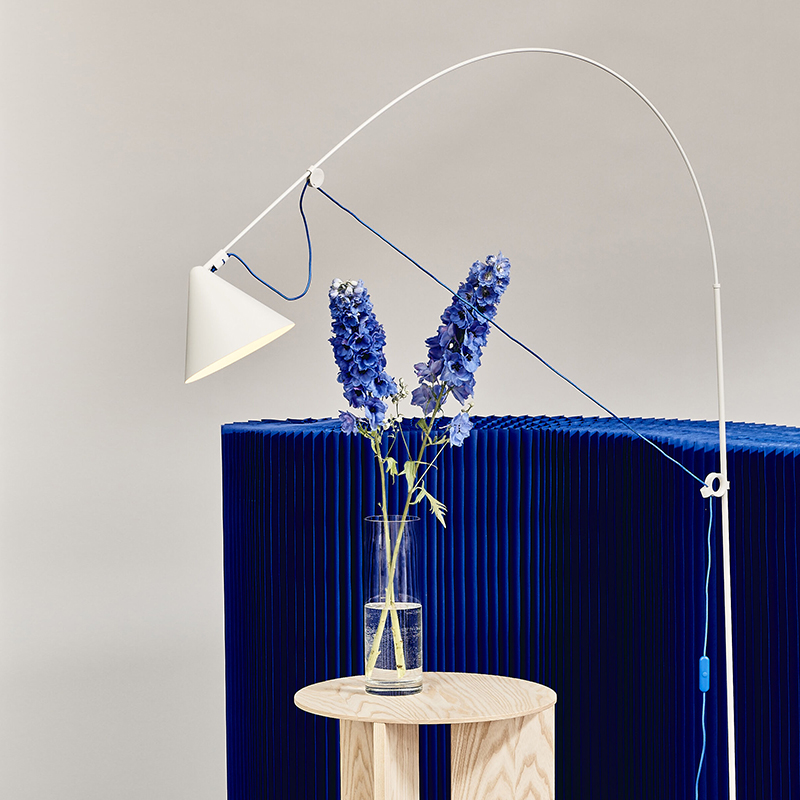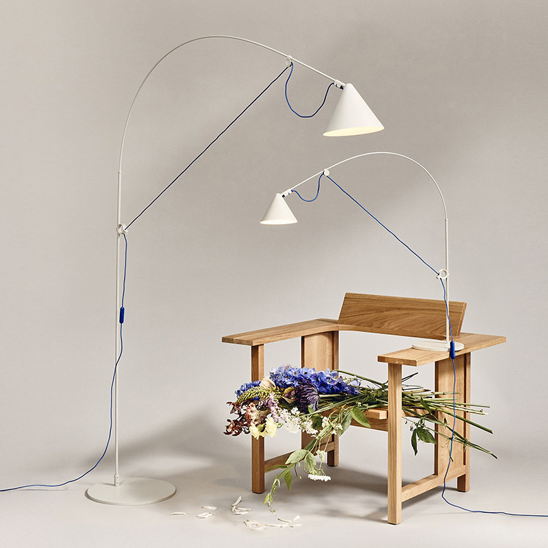フロアランプAYNO Lは、小さなダイニングテーブルやワークデスク、ソファや読書コーナーを照らすのに最適な調節可能なサイズです。アークの柔軟性と2点調整により、アーク幅は最大120cmまで柔軟に調整でき、微調整は回転するランプシェードで行います。