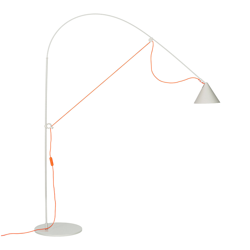 フロアランプAYNO Lは、小さなダイニングテーブルやワークデスク、ソファや読書コーナーを照らすのに最適な調節可能なサイズです。アークの柔軟性と2点調整により、アーク幅は最大120cmまで柔軟に調整でき、微調整は回転するランプシェードで行います。