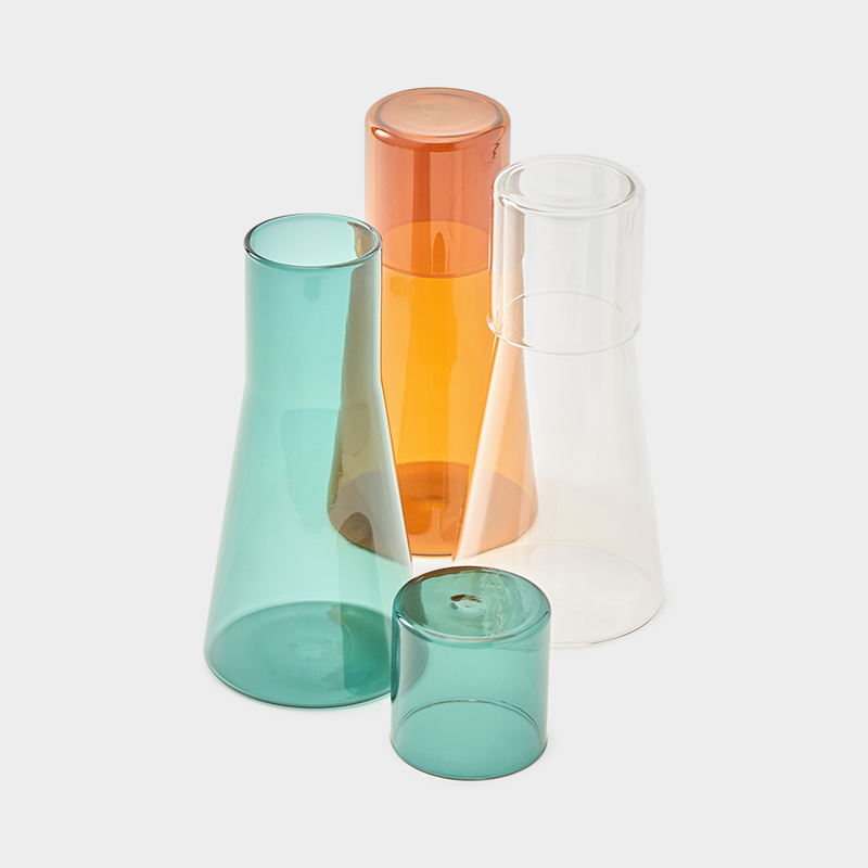 The Conran Shop(ザ・コンランショップ)オリジナルデザインのカラーボロシリケイトガラスを用いてハンドメイドで仕上げられた「Home Lab (ホームラボ)」コレクションは、実験器具から着想を得たユニークなフォルムが特徴です。