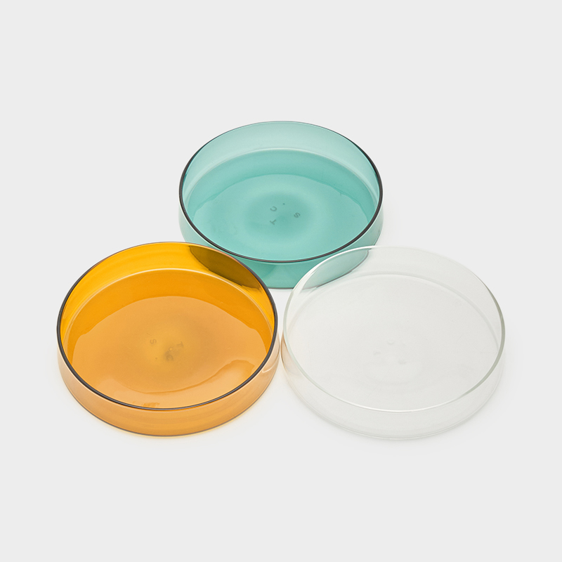 The Conran Shop(ザ・コンランショップ)オリジナルデザインのカラーボロシリケイトガラスを用いてハンドメイドで仕上げられた「Home Lab (ホームラボ)」コレクションは、実験器具から着想を得たユニークなフォルムが特徴です。