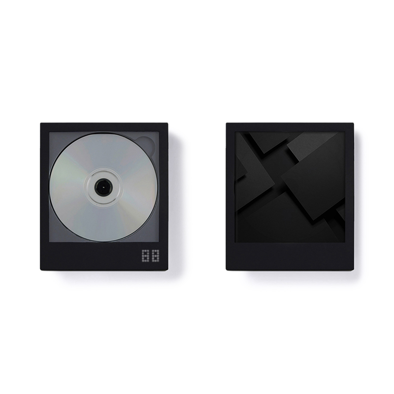 本体はインスタントフォトフレームを思わせる造形で、ジャケットを差し込むと写真やアートピースのように空間に溶け込み音楽を飾ることができます。