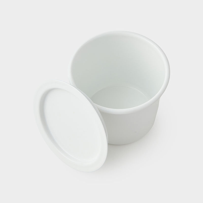シンプルな丸い形は、角も洗いやすくお手入れ簡単。サイズ違いでも径は同じなので、スタッキングが可能。琺瑯蓋なので、沢山重ねても蓋が曲がる心配は不要。そのまま食卓に出して器としての使い方も可能です。