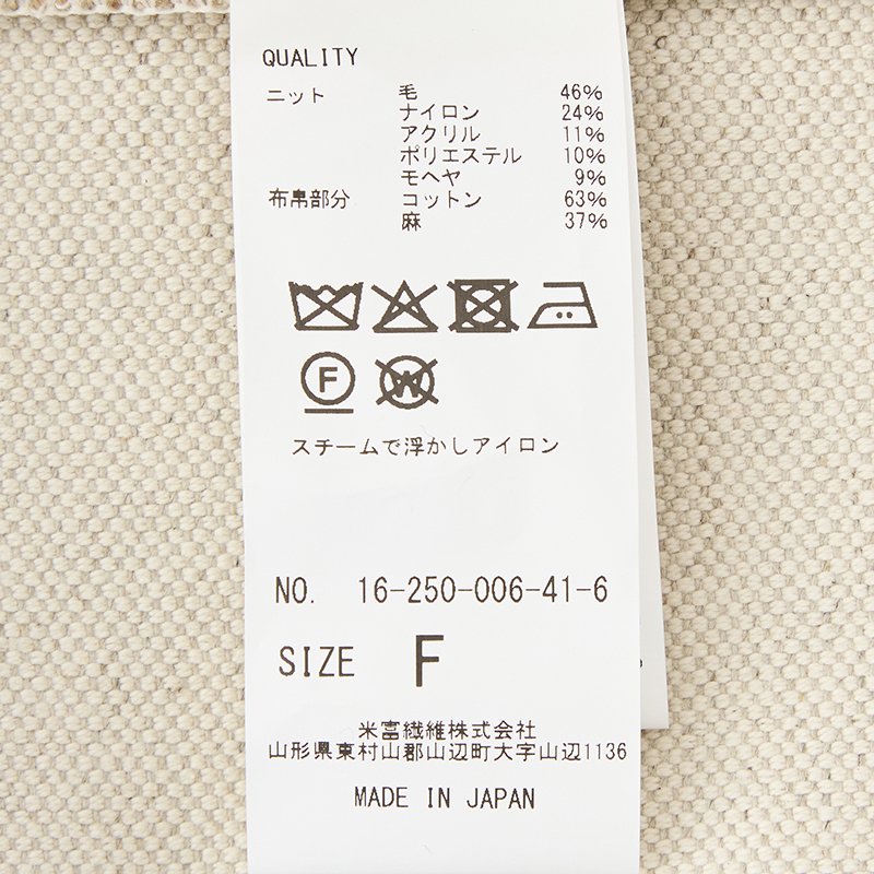 ・洗濯はラベルを参照のうえ、基本的にはクリーニング店に出すことを推奨します。
