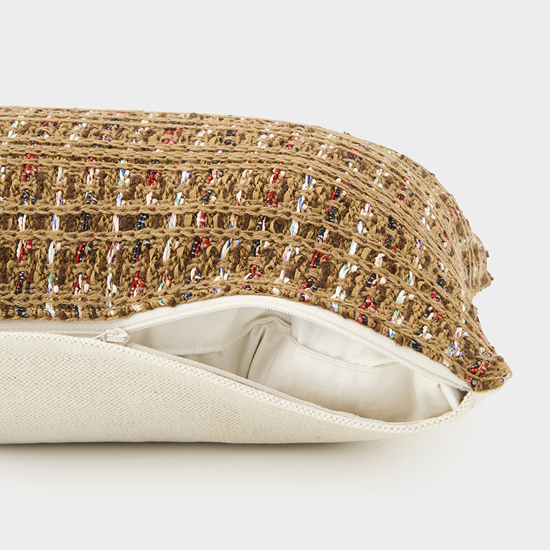 素材開発から生産までを自社工場内で一貫して行っている。老舗ニットメーカー米富繊維株式会社のファクトリーブランド「COOHEM(コーヘン)」のニット生地を贅沢に使用したクッションカバー