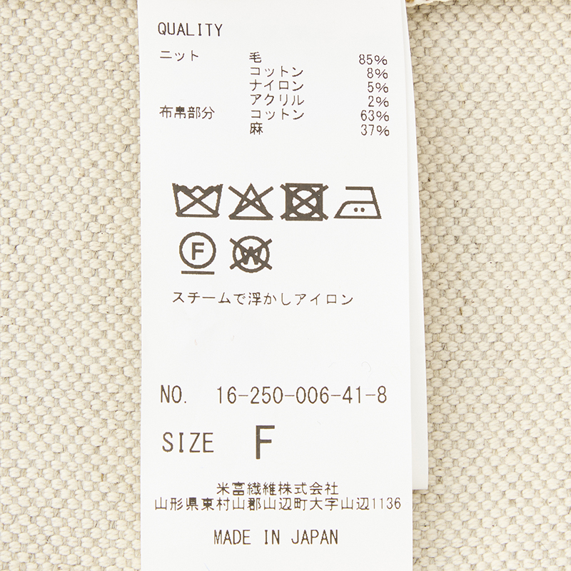 ・洗濯はラベルを参照のうえ、基本的にはクリーニング店に出すことを推奨します。