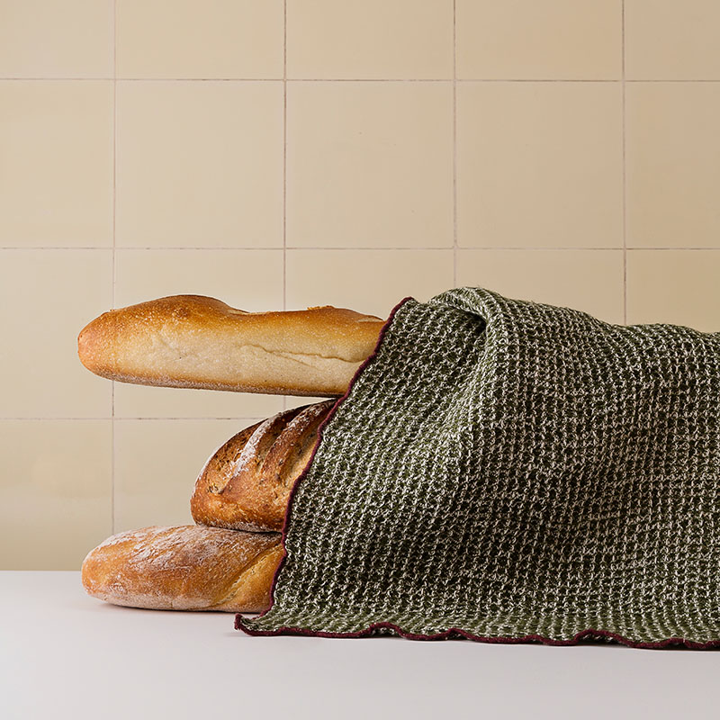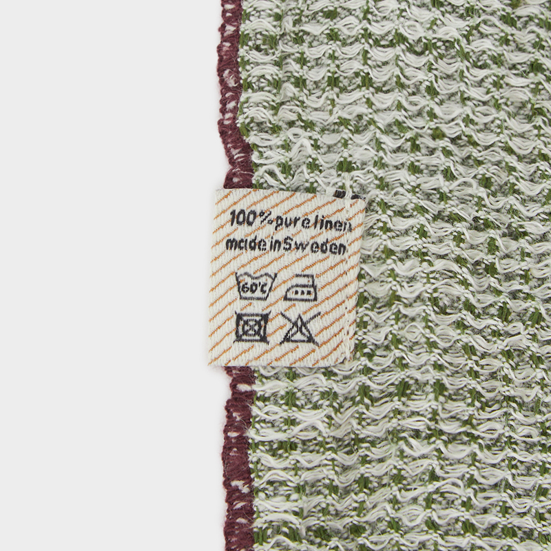素材にヨーロッパ産のリネンを使用し、糸は世界に誇る高い品質で知られるスウェーデン王室御用達の名門織物工場で紡がれています。糸づくりの段階から丁寧にデザインされたティータオルは、使うほどに風合いが増し、キッチンに心地よい彩りを添えてくれる、日常に小さな楽しみをもたらす存在です。