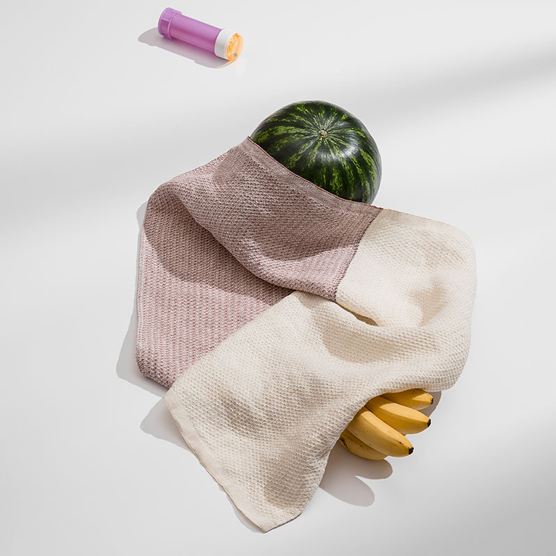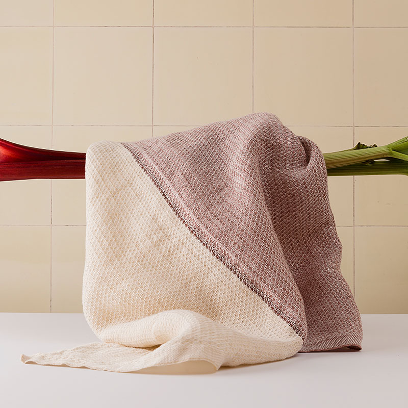 素材にヨーロッパ産のリネンを使用し、糸は世界に誇る高い品質で知られるスウェーデン王室御用達の名門織物工場で紡がれています。糸づくりの段階から丁寧にデザインされたティータオルは、使うほどに風合いが増し、キッチンに心地よい彩りを添えてくれる、日常に小さな楽しみをもたらす存在です。