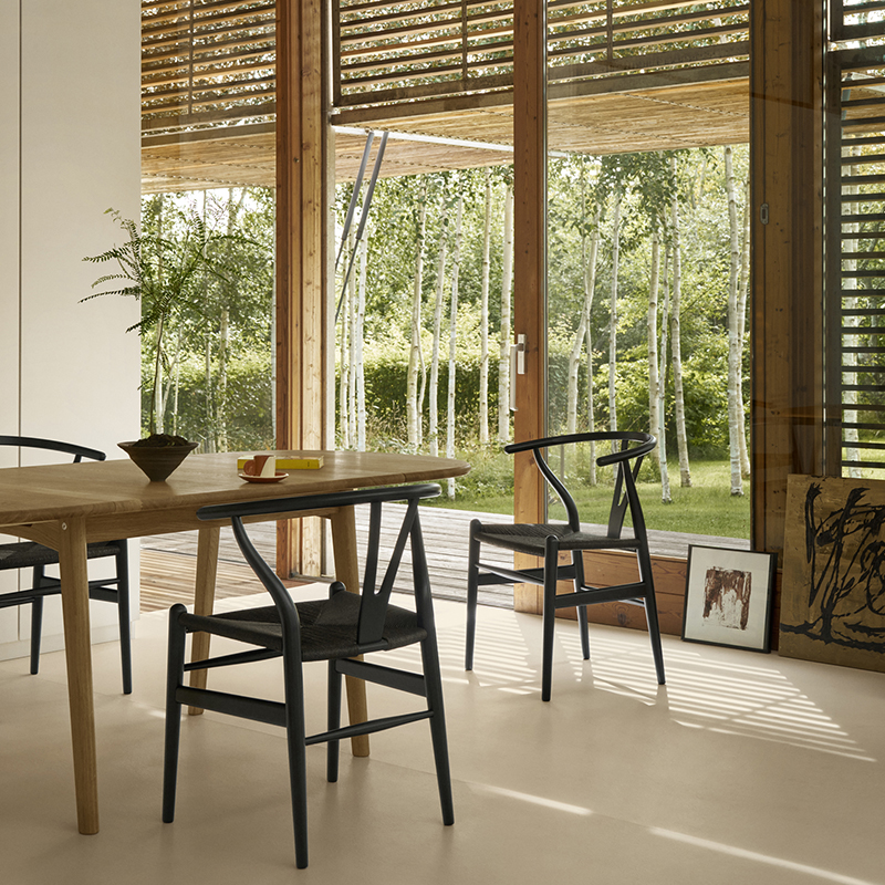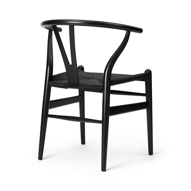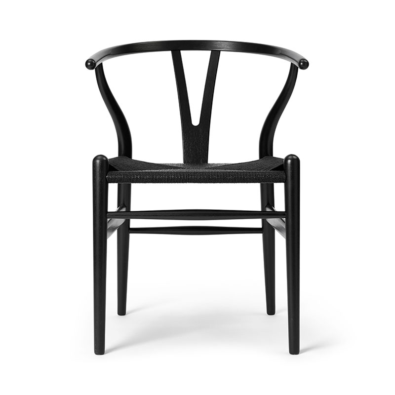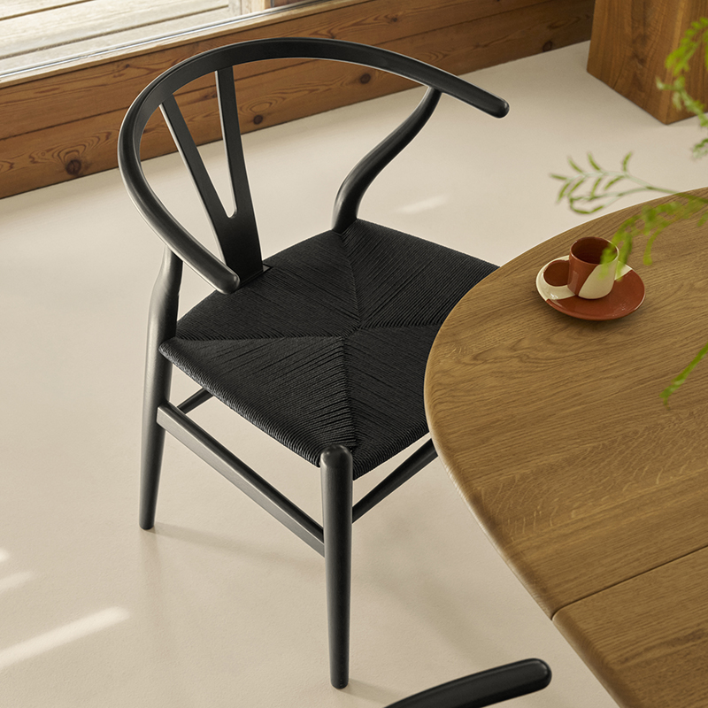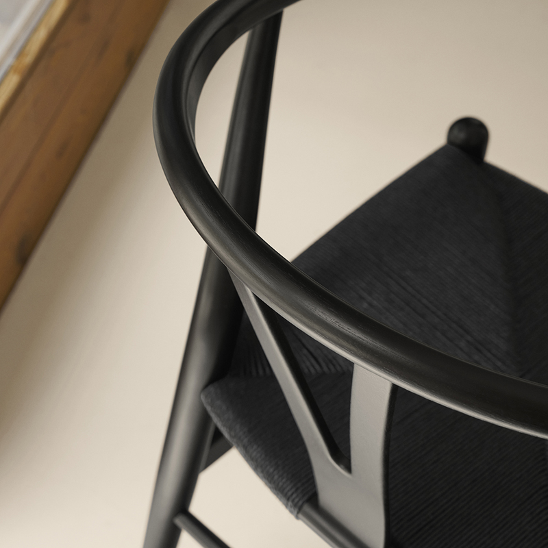 フレームにはFSC認証のユーカリ材を用い、座面にもブラックのペーパーコードを採用した、オールブラック仕様のCH24(Yチェア)です。