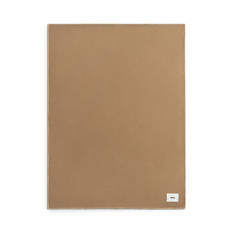 ベッドリネンからスタートしたコレクションは、現在ではタオルやスリープウェア、キッチンリネンなどにも広がり、どの製品も「日々の暮らしの中で使われ、長く愛されること」を前提にデザインされています。オーストラリア産ヴァージンラムウールと、イタリア産リサイクルラムウールを掛け合わせてつくられたTEKLAのブランケット。