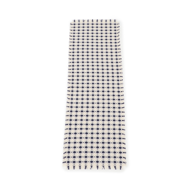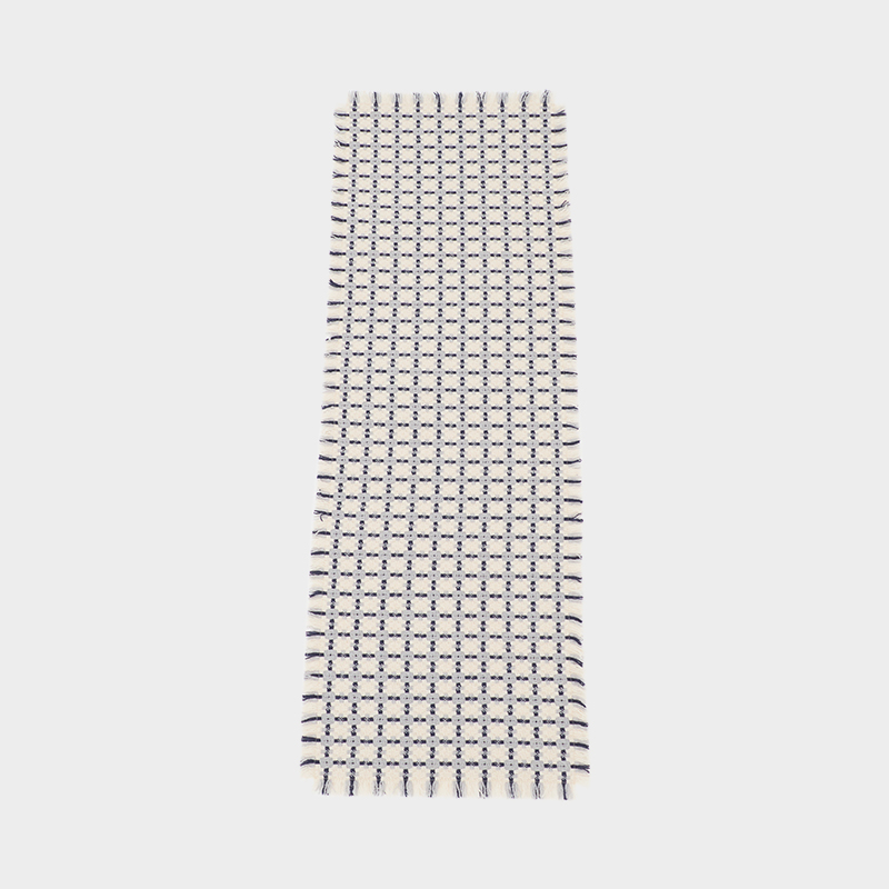 Kijinokanoseiのセンタークロス。小さめのテーブルランナーとしてや、棚やコンソールの敷物としてお使いいただくのもおすすめです。