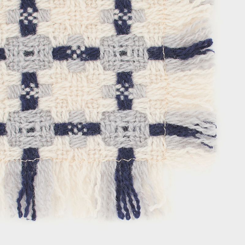 裏から見ると格子柄のように見えるのが面白い組織となっています。「昼夜」と名付けており、もう一つのネイビー系の素材チュウヤ ネイビーと対になっています。