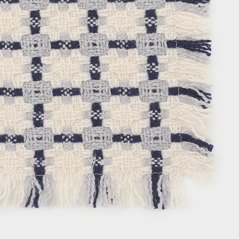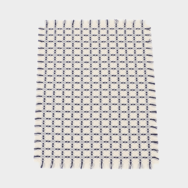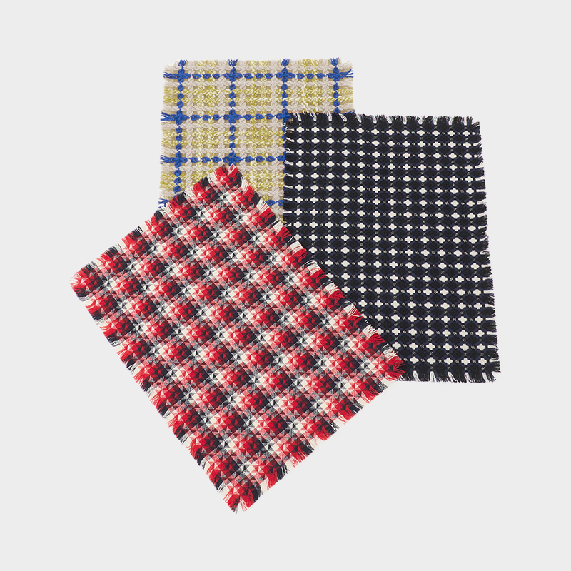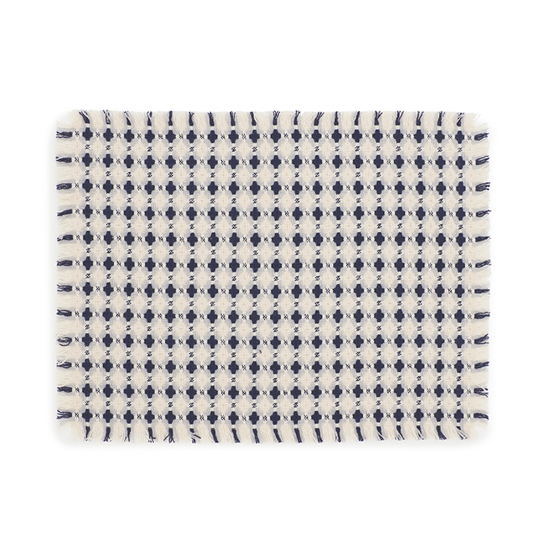 設計図からは計算しつくせない偶然性も、生地がもつ可能性だと考え、できあがった生地は服や暮らしの道具、インテリアなどさまざまなものへと形を変えていきます。Kijinokanoseiのプレイスマット。