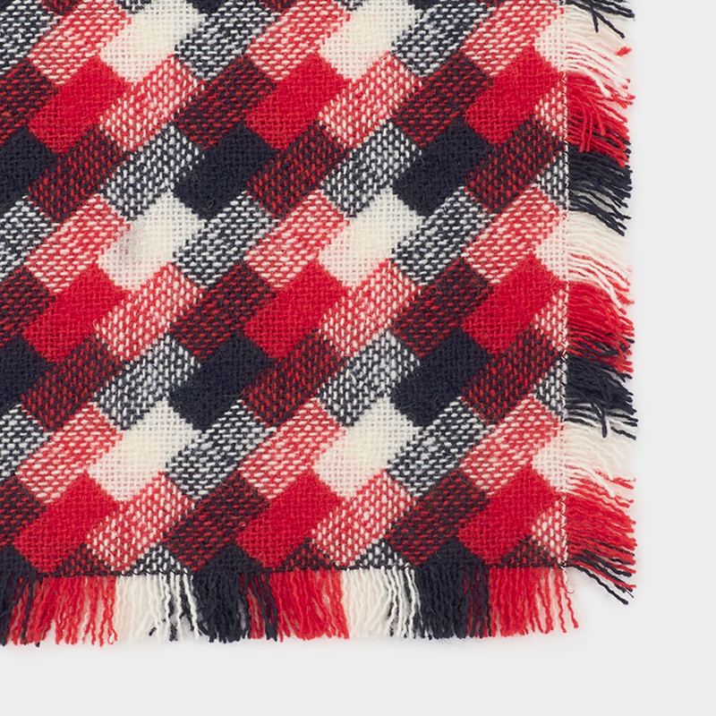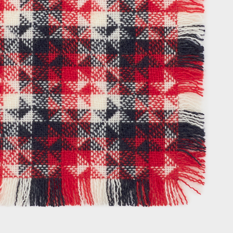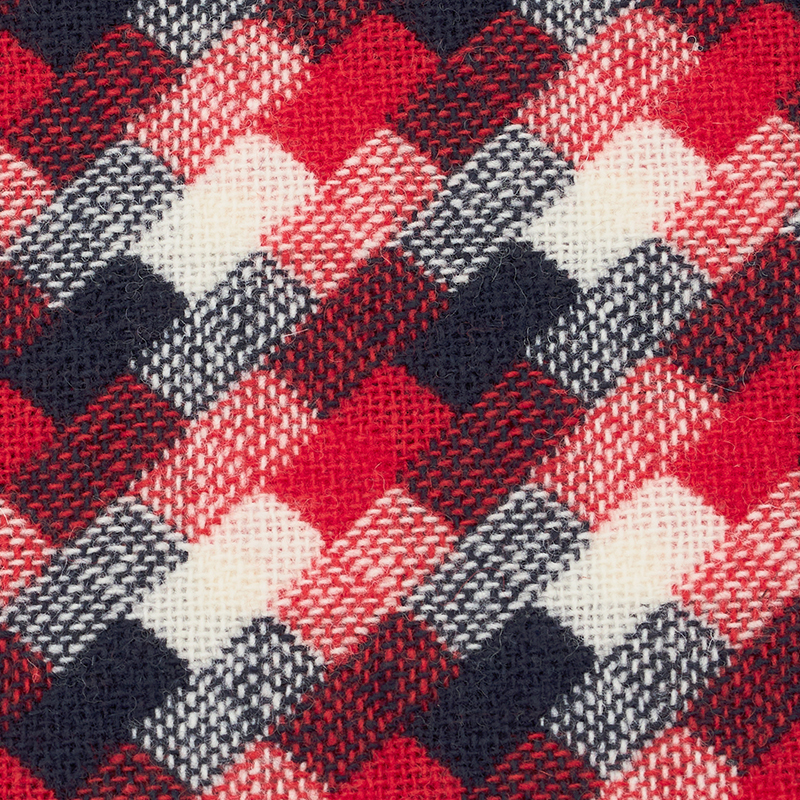赤とシロ、ネイビーのたった3色のみで構成されていますが糸が織り重なることで深みのある表情を作り上げています。