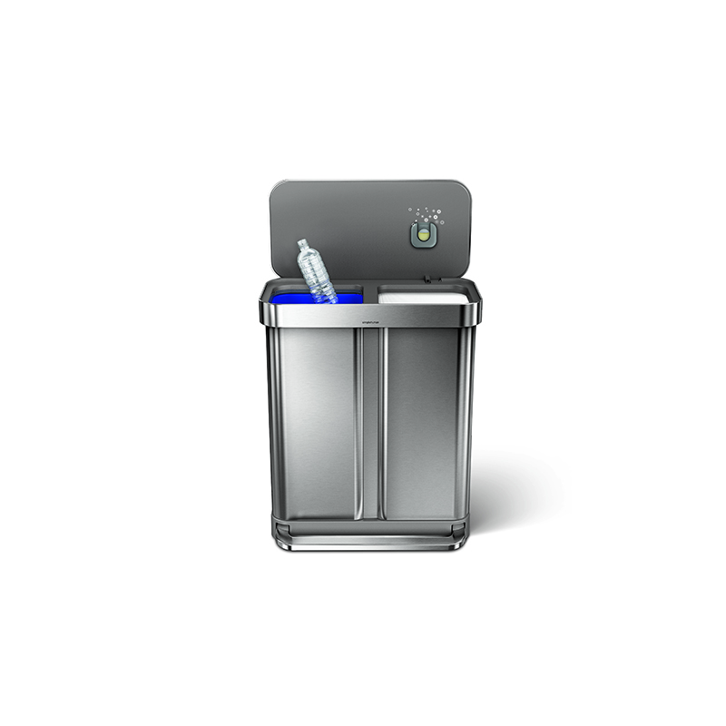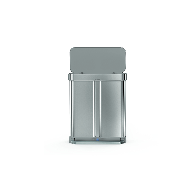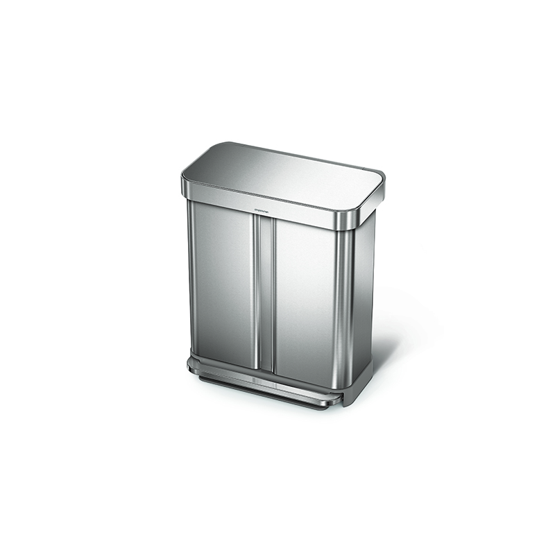 高性能を追求しながら環境負荷を減らす。それがシンプルヒューマンのモノづくりです。58Lステップリサイクラーカンは、内部が2つに分かれた分別仕様で、スペースを有効に使いながらスムーズに分別できます。
