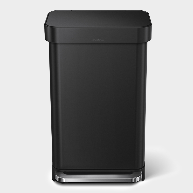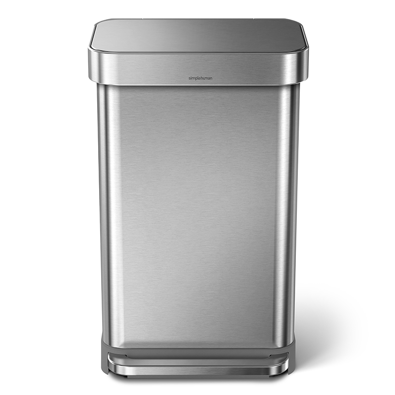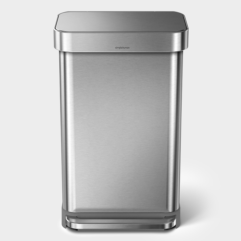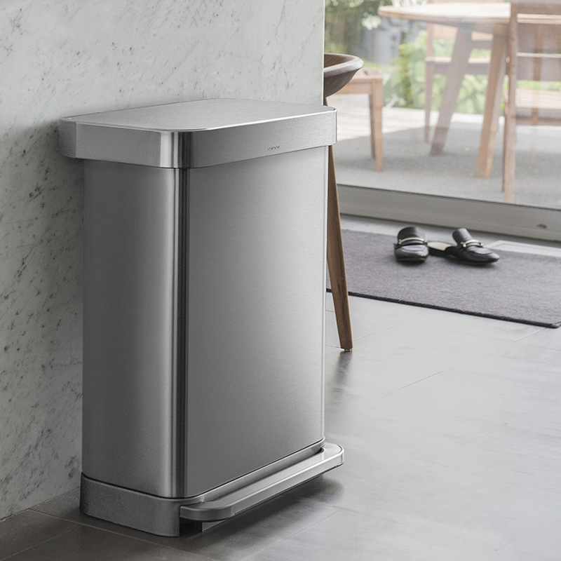 高性能を追求しながら環境負荷を減らす。それがシンプルヒューマンのモノづくりです。ステンレス製のレクタンギュラーステップダストボックスには、ゴミ袋を収納できる便利な「ライナーポケット」つき。