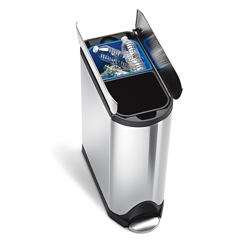 高性能を追求しながら環境負荷を減らす。それがシンプルヒューマンのモノづくりです。リサイクルバタフライステップダストボックスは、フタが中央から分かれて開くため、上部に高さ制限のあるスペースにも最適です。
