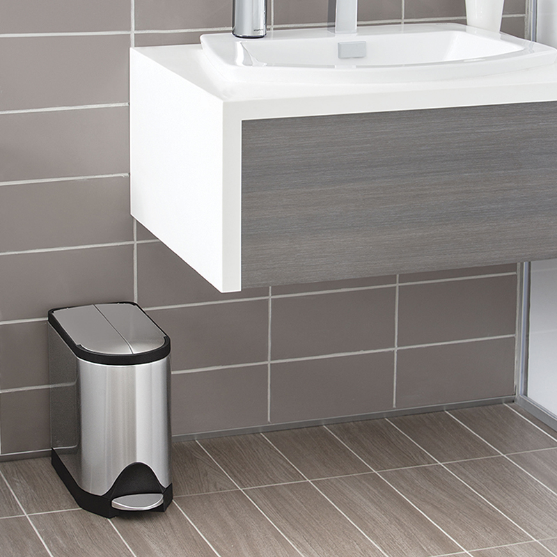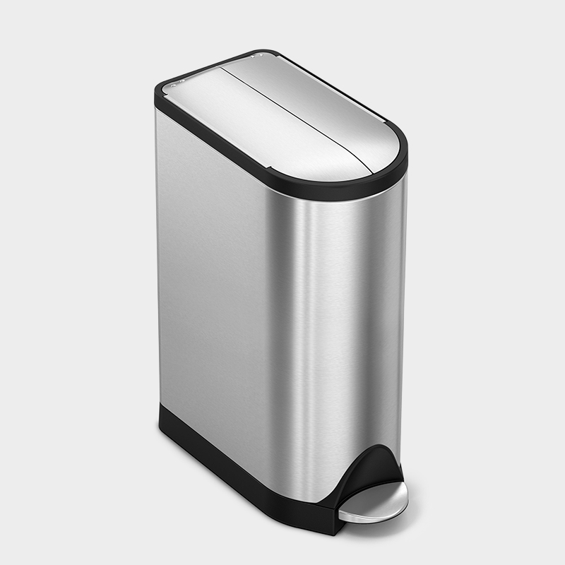 高性能を追求しながら環境負荷を減らす。それがシンプルヒューマンのモノづくりです。洗面所などの限られたスペースにも最適な小型のダストボックス。