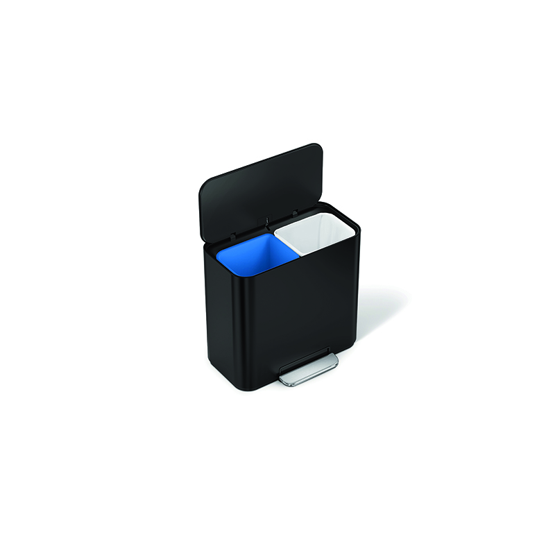 高性能を追求しながら環境負荷を減らす。それがシンプルヒューマンのモノづくりです。狭いスペースにもすっきり収まるミニリサイクルステップカン。
