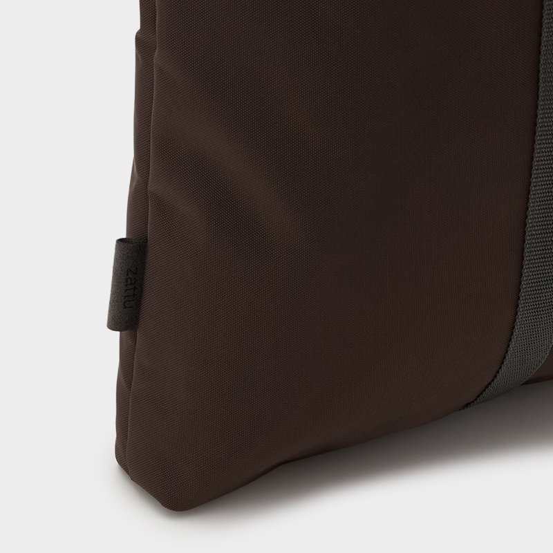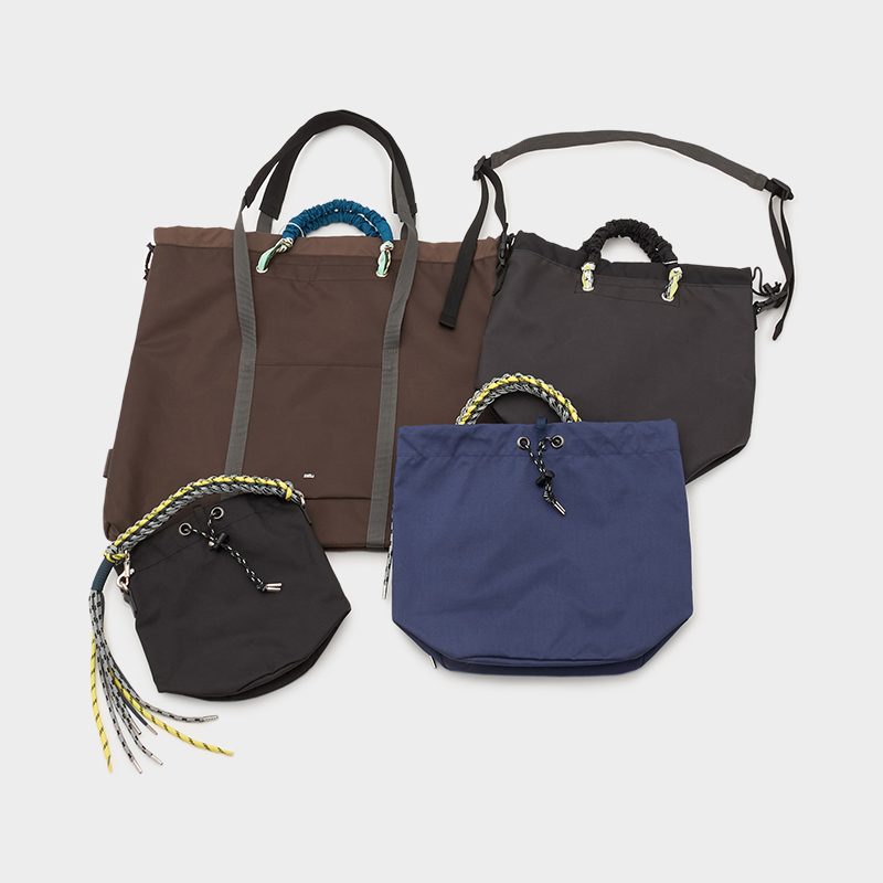 革以外の素材を指す“雑材” をメインにし、気軽さと実用性、ファッション性を備え持った大人のカジュアルスタンダードを追求するブランドです。軽量でハリのあるナイロンを使用し、コードとマイクロファイバースエードを束ねたハンドルと肩掛け用のテープショルダーが付いた2WAYトートバッグ。