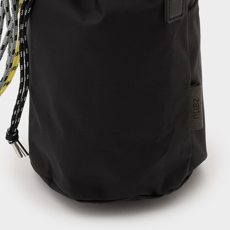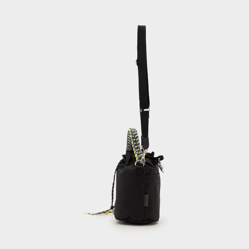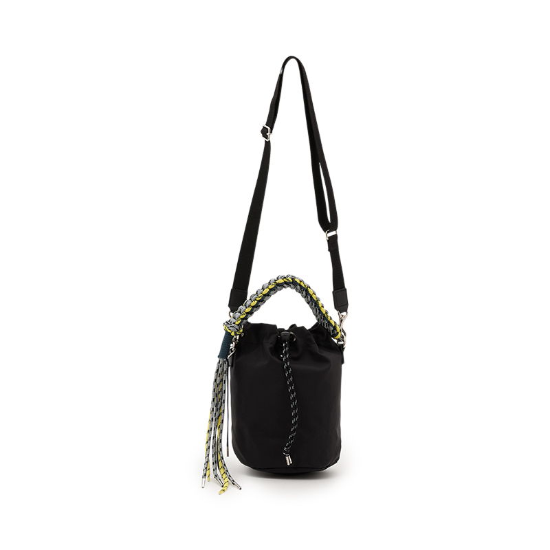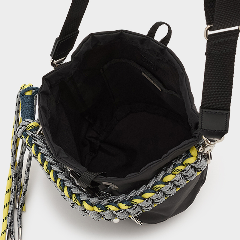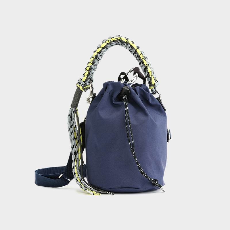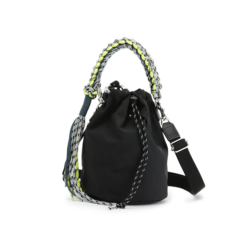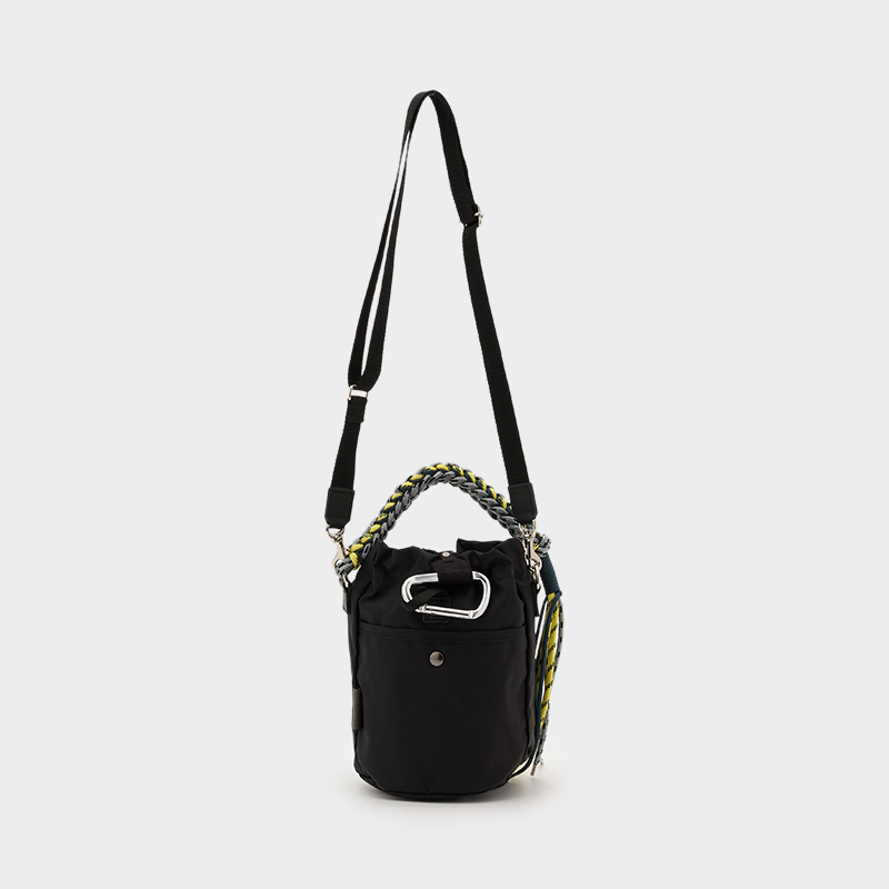 タフで軽量、マット感のあるナイロンを使用し、カラフルなコードで編んだハンドルが特徴的な巾着型スモールショルダー。