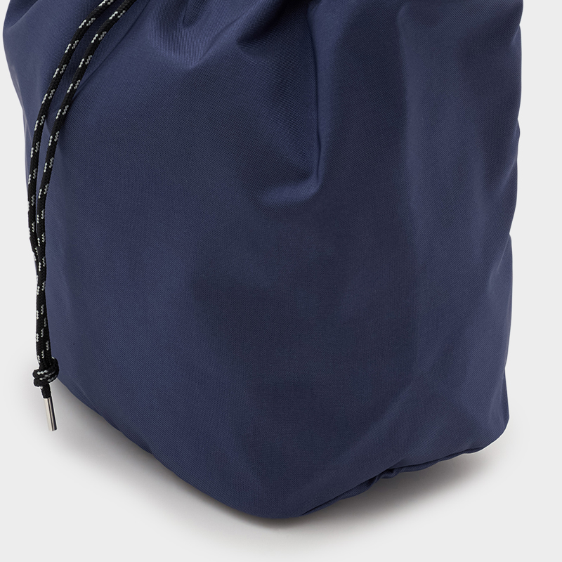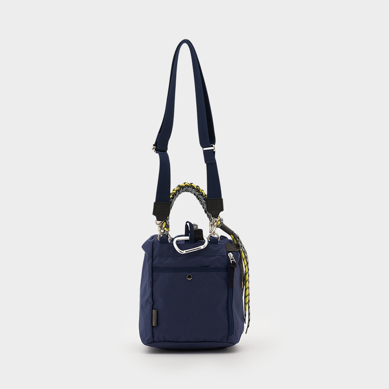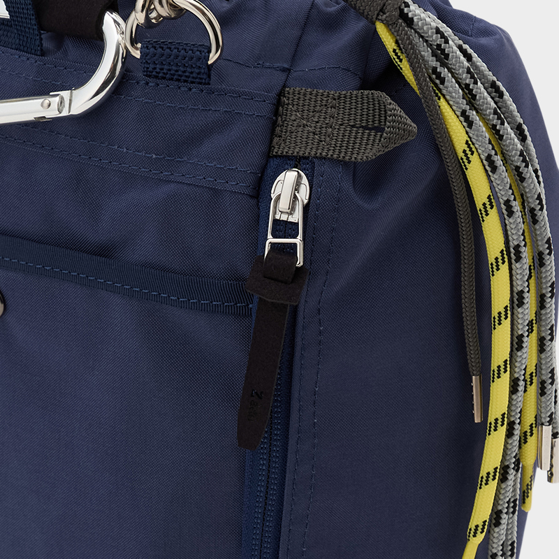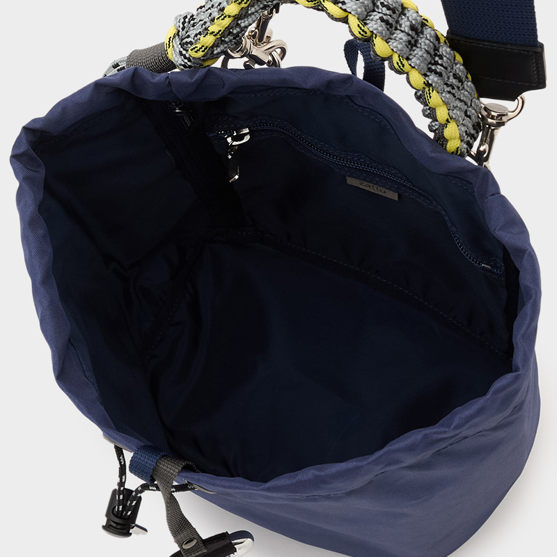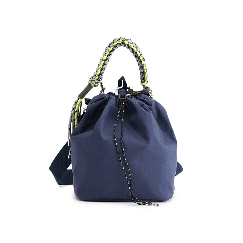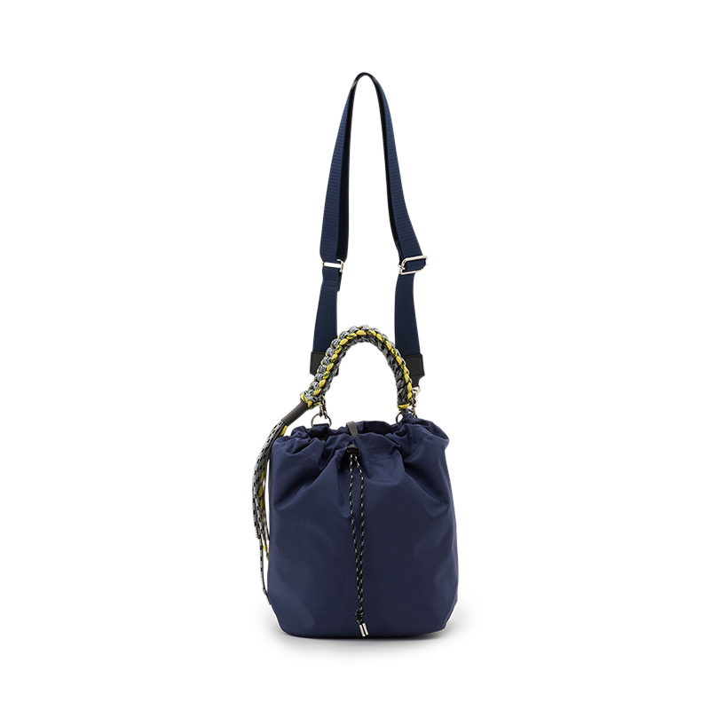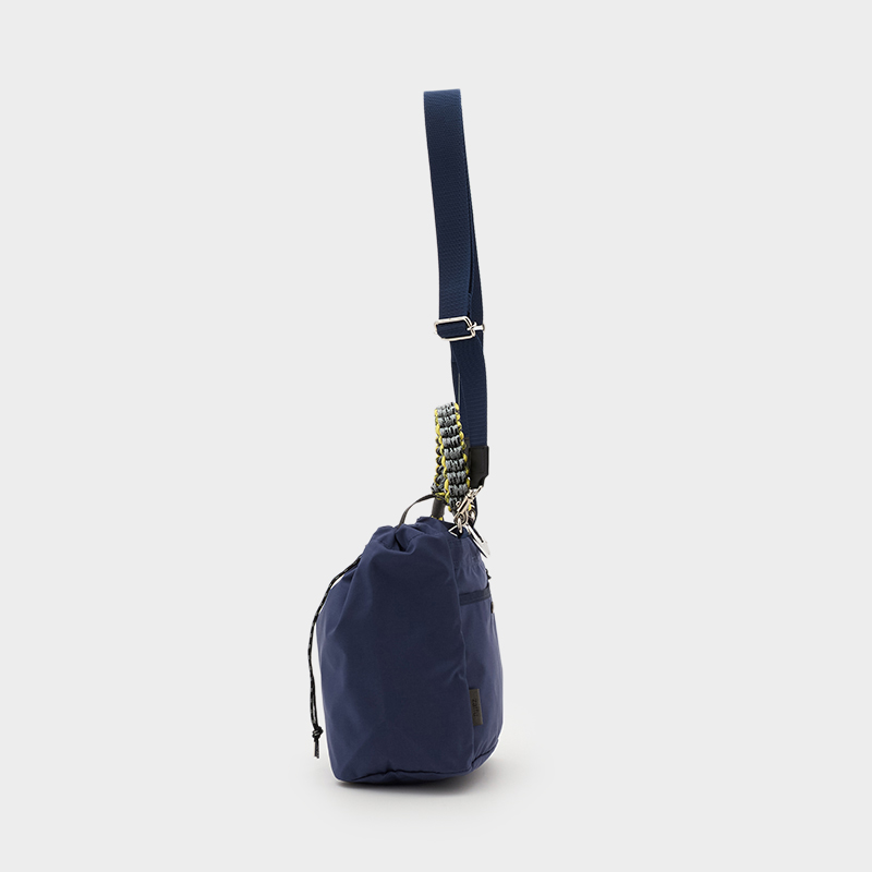 タフで軽量、マット感のあるナイロンを使用し、カラフルなコードで編んだハンドルが特徴的な巾着型ミディアムショルダー。