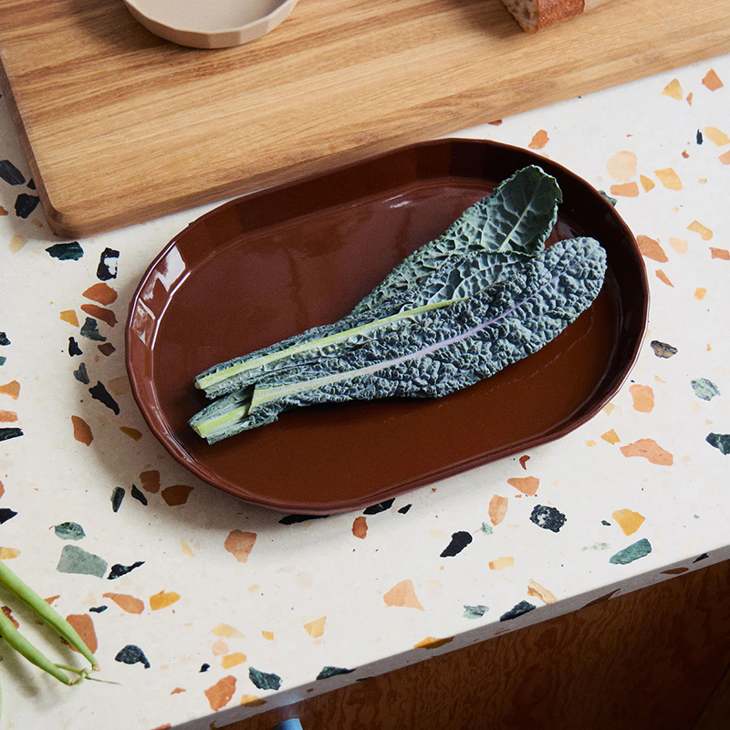 オーバルプラッター32cmはオーブン対応で、焼き皿としてはもちろん、サービングトレイとしても活躍する万能なプレートです。