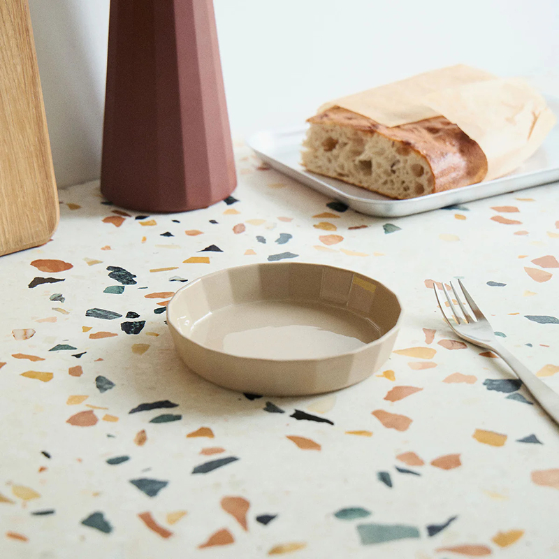 使い勝手も抜群で、小皿からプレート、ボウル、マグ、サーブウェアまで揃い、日常の食卓をさりげなく格上げしてくれます。ミルク・カカオ・オートミールの3色展開です。