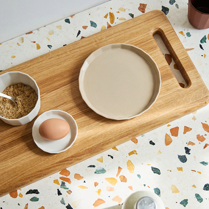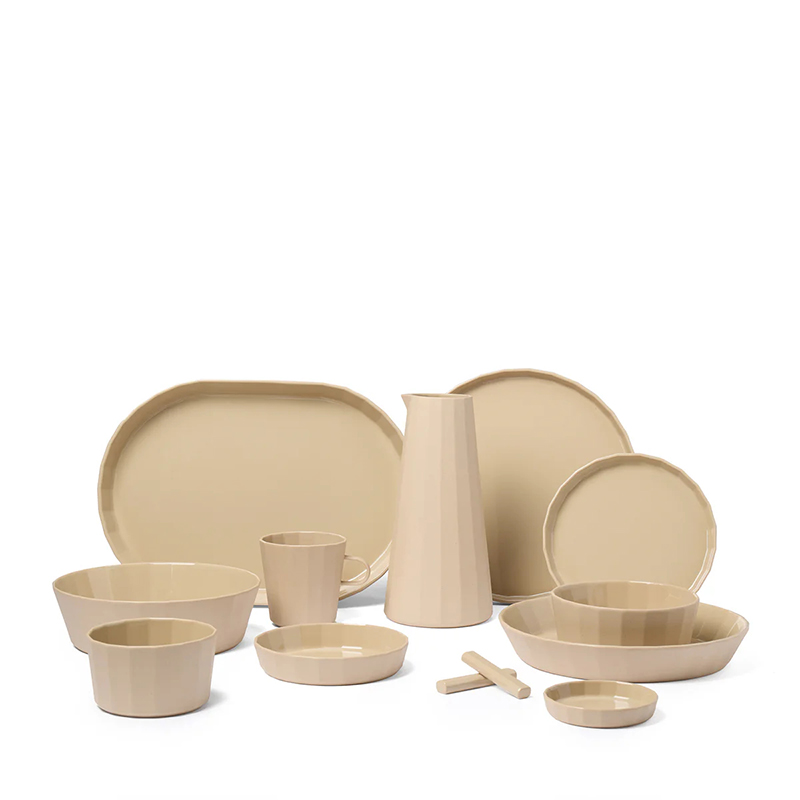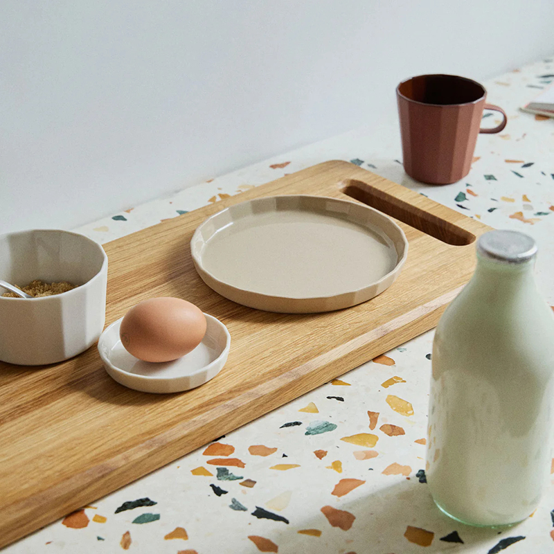 使い勝手も抜群で、小皿からプレート、ボウル、マグ、サーブウェアまで揃い、日常の食卓をさりげなく格上げしてくれます。ミルク・カカオ・オートミールの3色展開です。