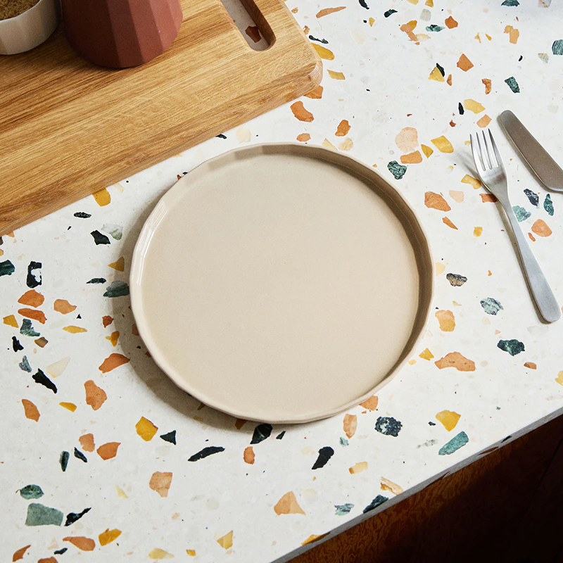 使い勝手も抜群で、小皿からプレート、ボウル、マグ、サーブウェアまで揃い、日常の食卓をさりげなく格上げしてくれます。ミルク・カカオ・オートミールの3色展開です。