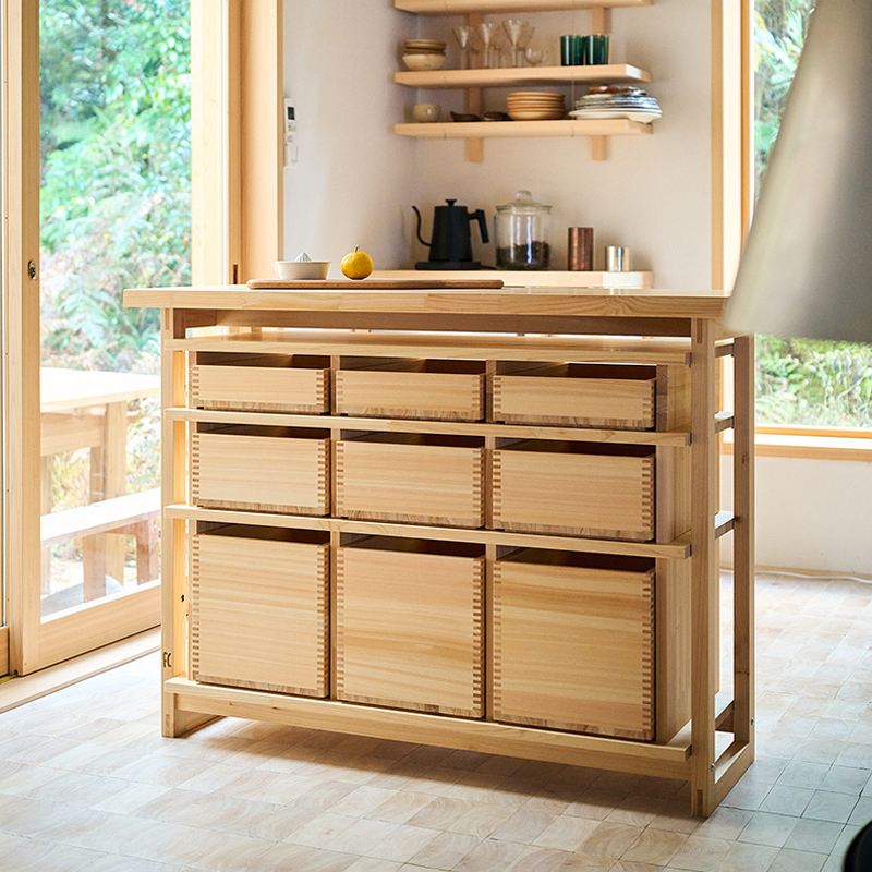 日々の使い勝手を重視したサイズ設計のもと、内部構造や木材のつなぎ方、表面の仕上げに至るまで、細部まで丁寧に検証を重ねて仕上げられています。