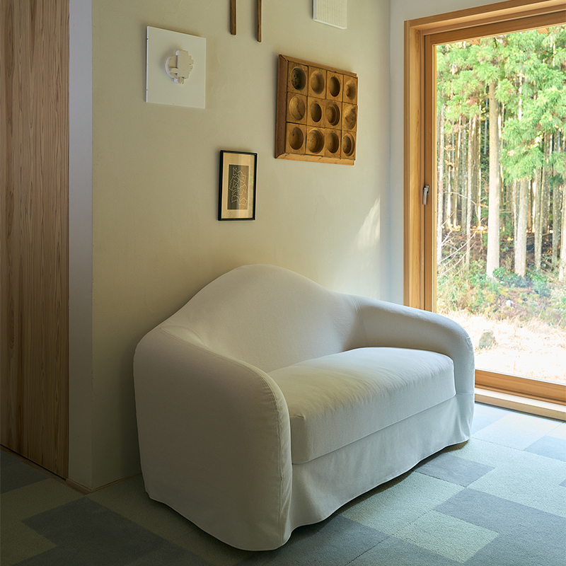 2024年に奈良県東吉野村へ移住した彼が、日本の暮らしに寄り添う視点と自由な発想をもとに生み出したソファシリーズです。