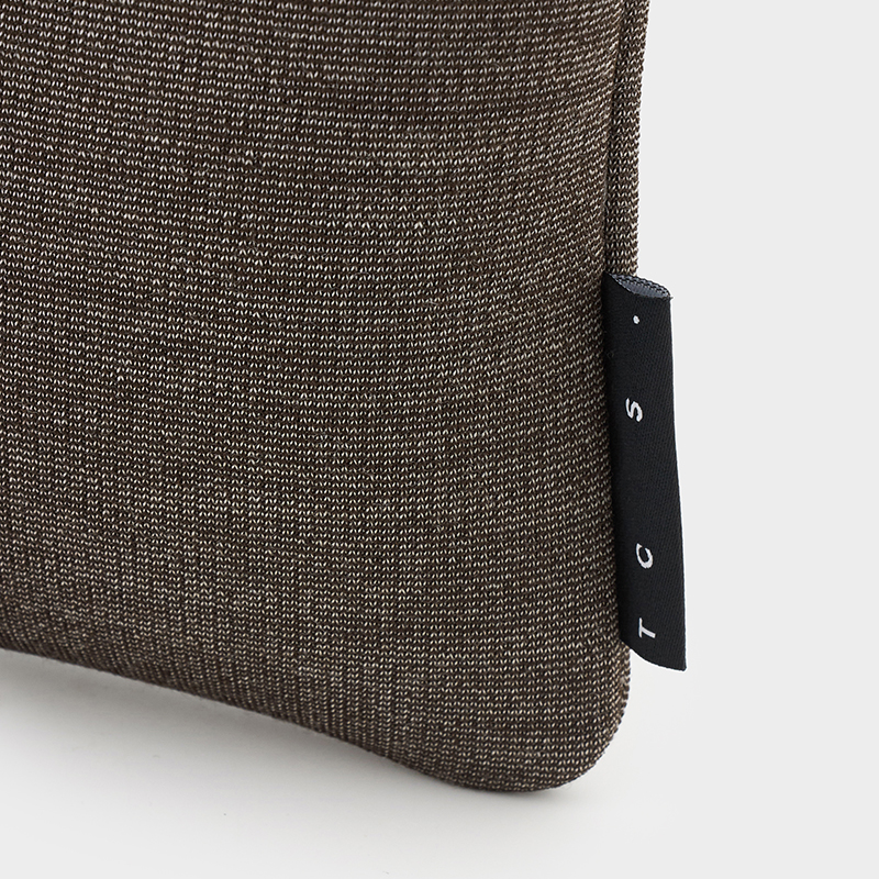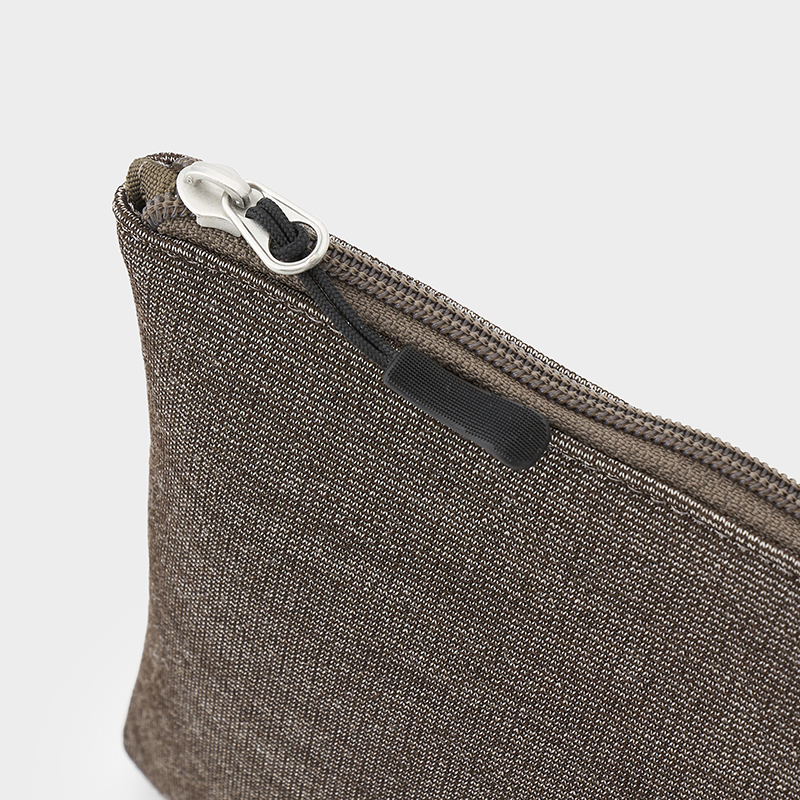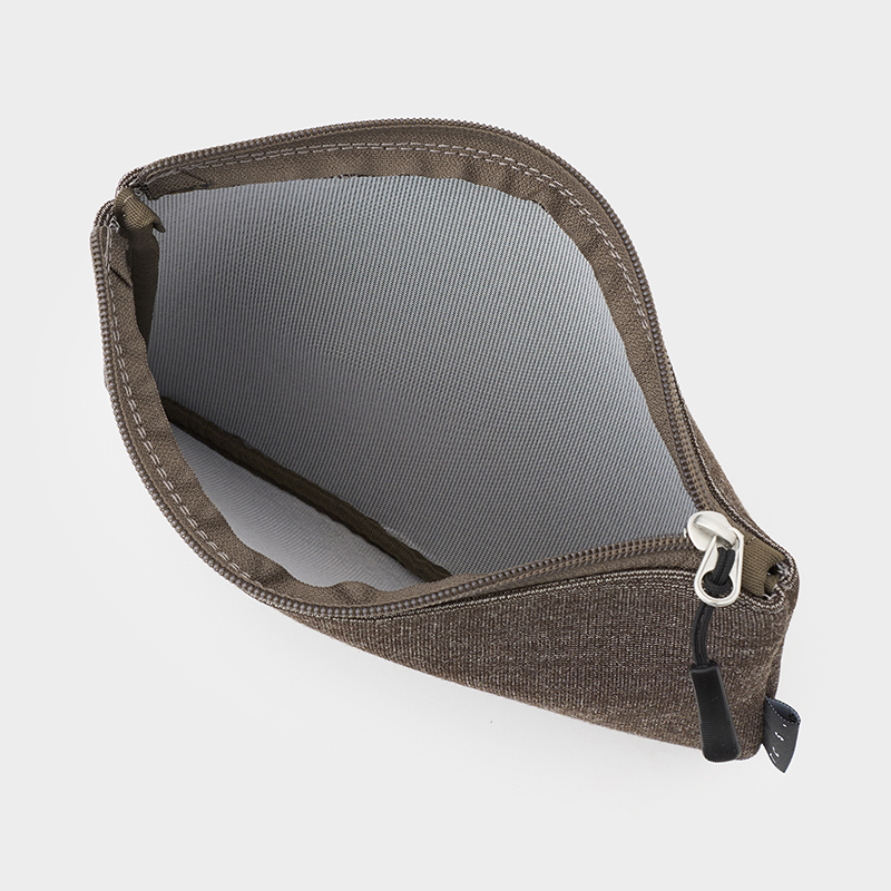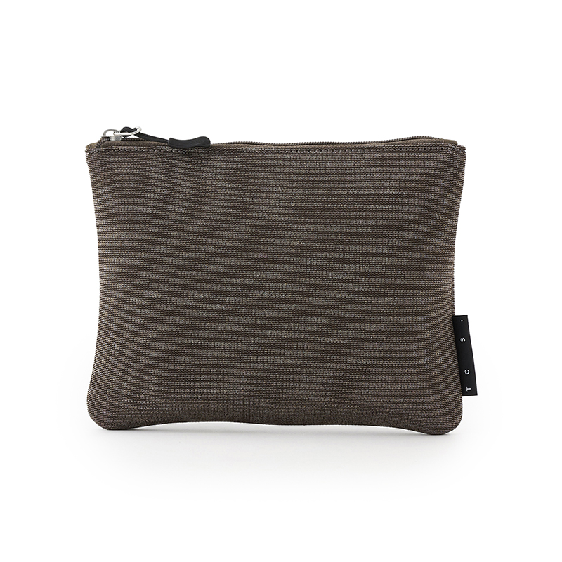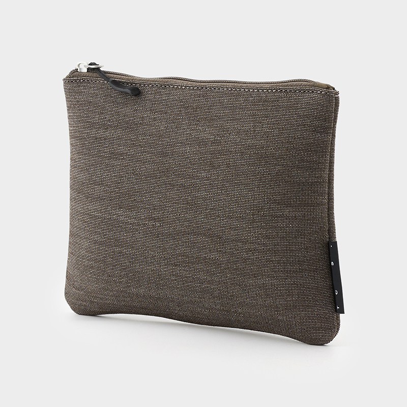 「UNIFORM MELANGE(ユニフォームメランジ)」は、ほどよい厚みと伸縮性を兼ね備えており、ガジェットなどをまとめるポーチとしてもおすすめです。生地には2色の異なる糸が組み合わせられており、シンプルながら繊細な色使いとなっています。