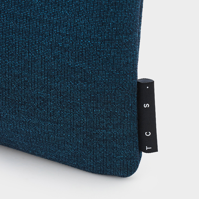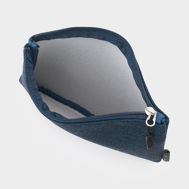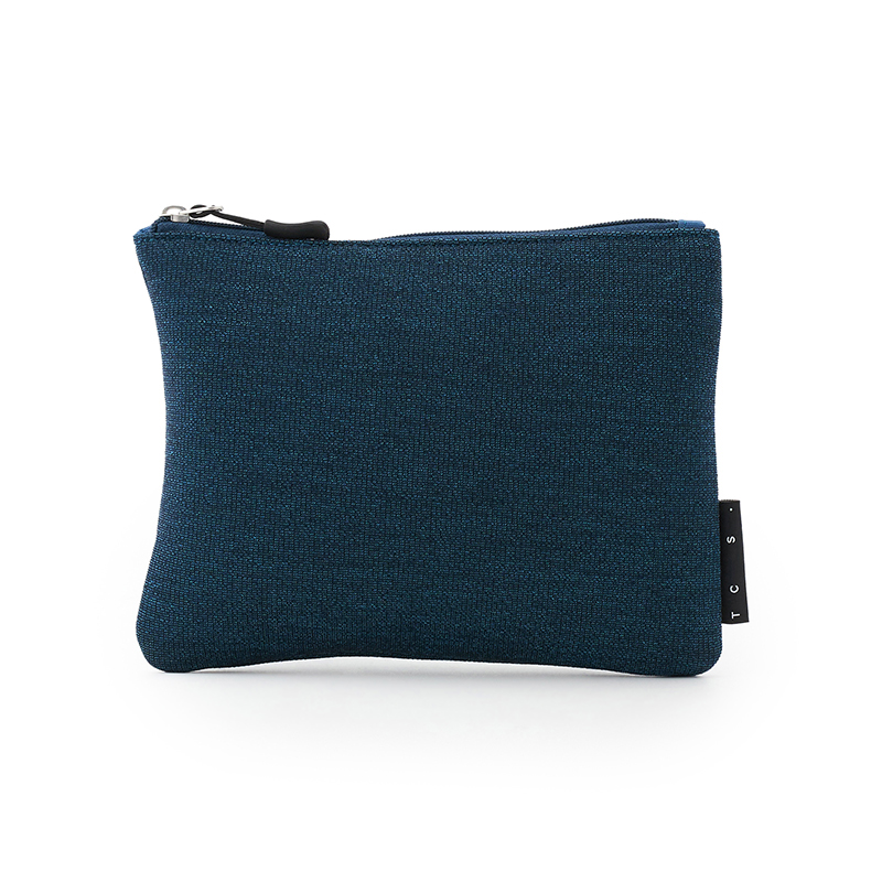 「UNIFORM MELANGE(ユニフォームメランジ)」は、ほどよい厚みと伸縮性を兼ね備えており、ガジェットなどをまとめるポーチとしてもおすすめです。生地には2色の異なる糸が組み合わせられており、シンプルながら繊細な色使いとなっています。