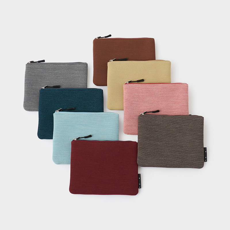 「UNIFORM MELANGE(ユニフォームメランジ)」は、ほどよい厚みと伸縮性を兼ね備えており、ガジェットなどをまとめるポーチとしてもおすすめです。生地には2色の異なる糸が組み合わせられており、シンプルながら繊細な色使いとなっています。