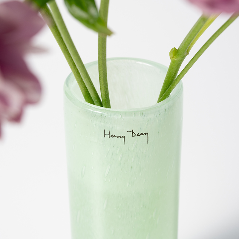 1972年にベルギーの小さな街で、旅と読書とモダンアート、ガラスをこよなく愛するHenry Deanによって設立されたブランド。彼は、日々の生活の中でふと浮かんだ映像をガラスによって表現してきました。現在は引退し、フランスの田舎町で静かな生活を送りますが、その情熱は二人の息子と娘に受け継がれています。古くからガラス生産が盛んな東欧の工場で、熟練した職人たちの吹きガラス製法によってひとつひとつ丁寧に作られた花器は、手に取ると冷たいガラスの中にハンドメイドのあたたかな温もりが感じられます。初めてのHenry Deanとして選ぶなら「Pipe」(パイプ)シリーズがおすすめです。「Pipe S」は一輪挿しとしてはもちろん、複数本を活けることもできるサイズ感です。
